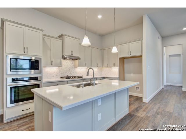 The only new community in Schertz offering over twelve miles of trails, The Crossvine is home to this stunning one story Juniper floor plan by Brightland Homes. This thoughtfully designed 2168 square foot home features four bedrooms and three full bathrooms, with an impressive eight foot front door and eight foot interior doors that enhance its spacious feel. The upgraded kitchen includes 42 inch cabinets with crown moulding, built in appliances, and a large island that opens to the dining and living areas, making it perfect for gatherings and everyday living. The enlarged covered patio provides an ideal space for relaxing or entertaining outdoors. The owner's suite includes a private bath with modern finishes and a generous closet. Located in the highly desirable Crossvine community, residents enjoy unmatched amenities including over twelve miles of trails, resort style pool, parks, and more. Do not miss your chance to own this beautiful home. Schedule your private showing today.