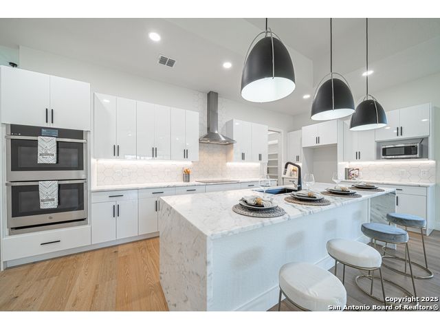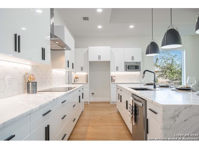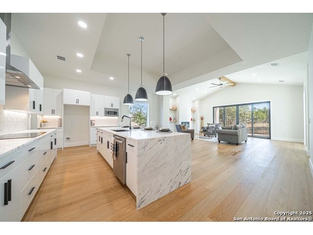 Modern New Construction with High-End Finishes! This beautiful 3-bed, 2.5-bath home features soaring ceilings with detailed designs throughout and an open-concept layout filled with natural light. The modern kitchen includes a waterfall island, GE appliances, soft-close cabinets, and a walk-in pantry. The spacious primary suite offers a luxurious ensuite and a massive walk-in closet. Enjoy an extended driveway, upgraded oversized garage, and large glass sliding doors that lead to a covered back porch prepped for your future outdoor kitchen. A must-see! Schedule your showing today.