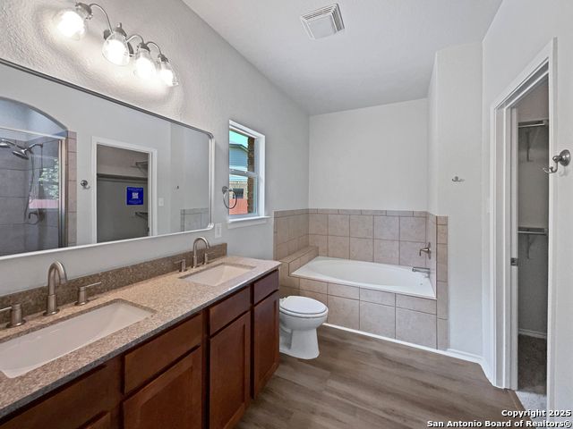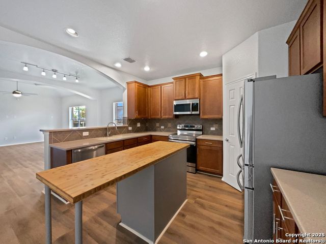 Check out this stunner! This home has Fresh Interior Paint, New flooring throughout the home. Discover a bright interior tied together with a neutral color palette. You'll love cooking in this kitchen, complete with a spacious center island and a sleek backsplash. Relax in your primary suite with a walk in closet included. The primary bathroom is fully equipped with a separate tub and shower, double sinks, and plenty of under sink storage. Take it easy in the fenced in back yard. The covered sitting area makes it great for BBQs! Hurry, this won't last long! This home has been virtually staged to illustrate its potential. 100-Day Home Warranty coverage available at closing