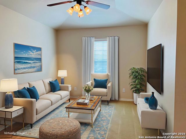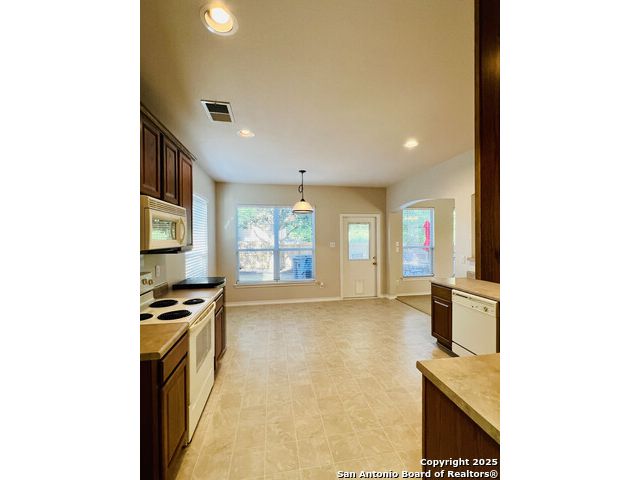 Gated community with two mature trees, a new deck and new fence in the backyard, providing plenty of outdoor space for relaxation and entertaining. The property backs up to a green belt, providing a sense of solitude and a short walk to directly access nearby bike trails, walking paths, and a park with a playground. Located near HEB, Walmart, and a wide selection of dining and entertainment. Quick access to major roads and highways for an easy commute. Upon entering the home, a spacious living area that is perfect for hosting guests or enjoying cozy nights in awaits. The kitchen is equipped with a large adjacent pantry and ample cabinet space in the 36-inch cabinets, making meal preparation simple. The dining area is conveniently located adjacent to the kitchen, creating a seamless flow for entertaining. The home also features a half bathroom on the main floor for added convenience. With 3 bedrooms, 2 bathrooms and a flex area upstairs, you can have a second living space. You will find the master bedroom with an ensuite bathroom and large walk-in closet, providing a private retreat. The additional bedrooms and bathroom offer plenty of space for you and your guests. The home has a new HVAC, understair storage, sprinkler system, gutters, and the roof has been replaced. This property offers a wonderful opportunity for buyers seeking a comfortable and wellmaintained home in a great location. Don't miss out on the chance to make this property your own and enjoy all that San Antonio has to offer. Offering a $5000 seller concession to the buyer for flooring or closing costs.