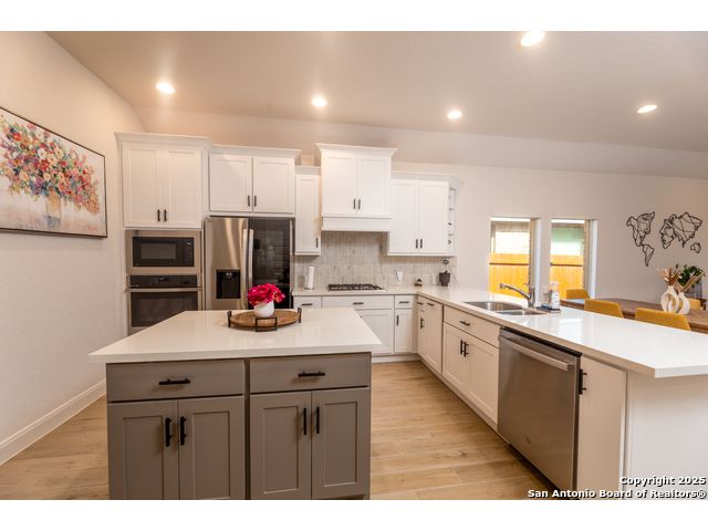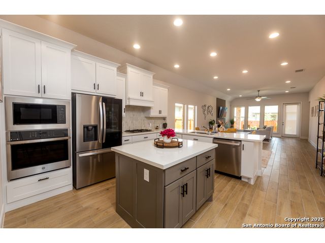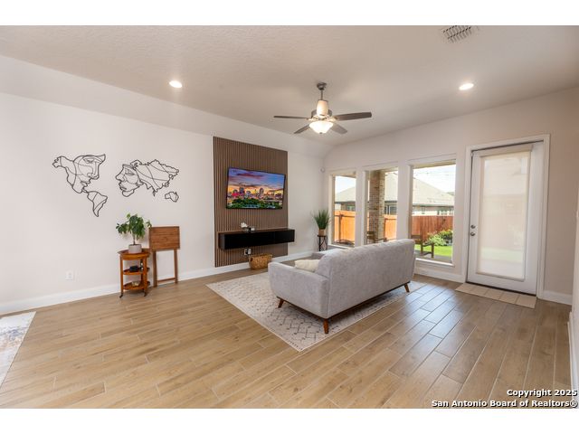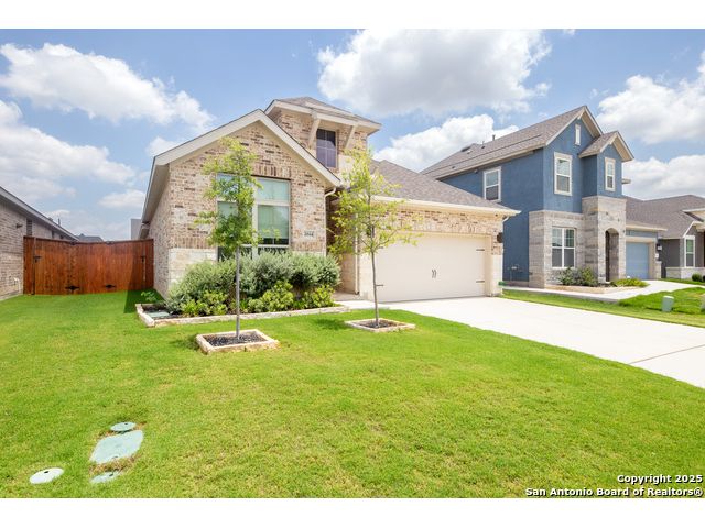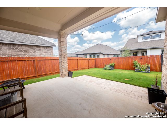 A must see! This gorgeous 1 year old beauty is move in ready! This one has all the perks of a new home, with tons of upgrades. Save TENS OF THOUSANDS of dollars on expenses that come with buying a new home directly from the developer. A sought after Perry Home with a transferrable 10-year warranty in the ever-growing Ladera Enclave subdivision, check out this spacious 4 bedroom home with an open floor plan and tons of natural light. 4-side brick, ceramic tile, quartz countertops, energy efficiency rating, this home was built to last a lifetime! Upgrades include LG Smart Fridge, water softener, extended HVAC warranty, full custom window coverings, extended patio and exterior accent lighting, landscaping, and so much more! Everything is already done, move in and enjoy!