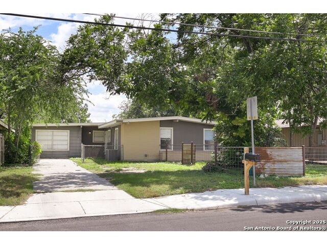 ***THIS PROPERTY IS A SHORT SALE***Welcome to this 3-bedroom, 1-bath home offering 1,332 sq ft of living space on a fully fenced, mixed-use lot-perfect for residential living or home-based business opportunities. Located just minutes from Loop 410 and right off Nacogdoches, this property features an open floor plan connecting the living, dining, and kitchen areas, hardwood floors full of character, and a converted garage that adds a spacious bonus room. While the home is in need of partial renovations and priced as a fixer-upper, recent updates include a newer roof, water heater, and a 3-4 year old AC unit. Gas is available for future upgrades, and a peaceful covered patio in the backyard offers space to unwind. With great potential for customization and growth, this is a unique opportunity you don't want to miss!