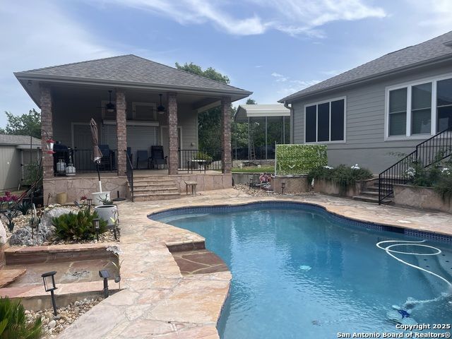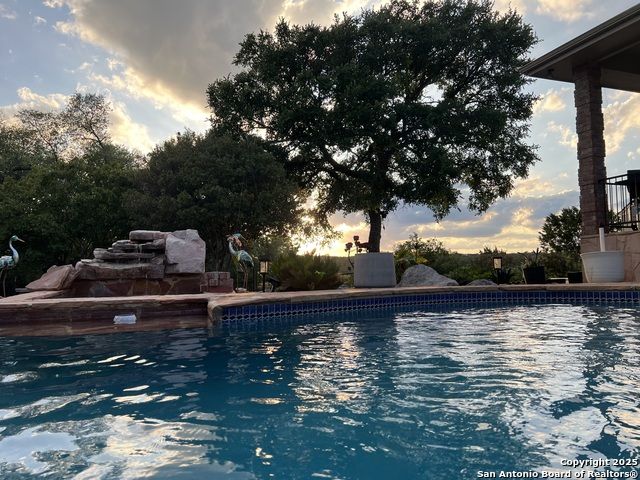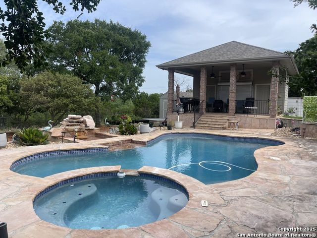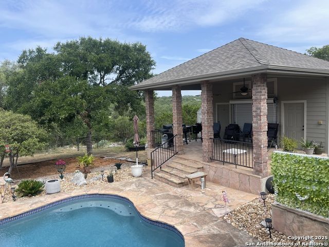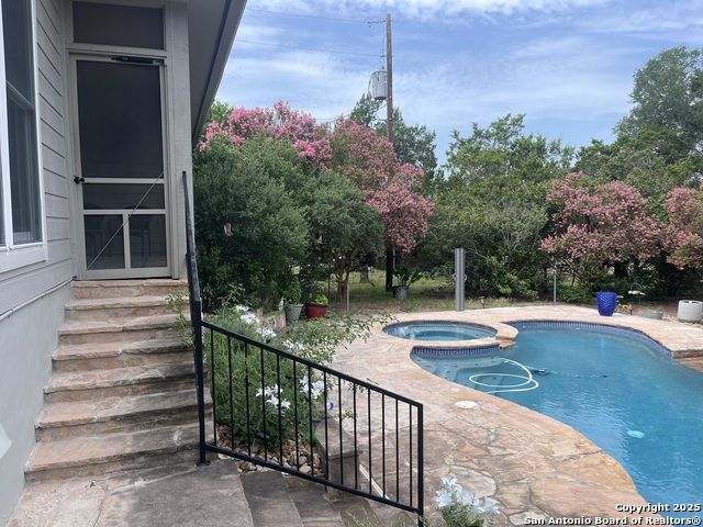 A quiet neighborhood located within driving distance to Canyon Lake. A nice 3 bedroom/3 bath home with pool with a outside bathroom Recent updates to countertops and flooring. A great home for entertaining or making it your retirement forever home. Parking for your RV or boat. The home comes with a back up generator. The home has sprayfoam insulation in attic. Lots of storage and outbuildings. Come check it out!