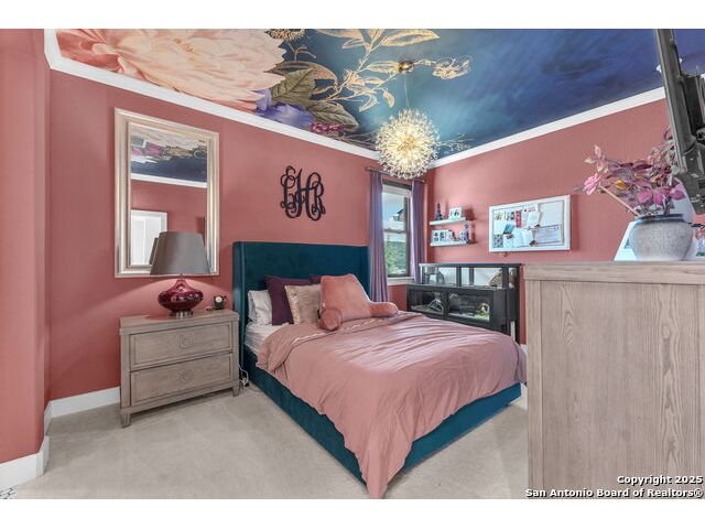 Welcome to your dream home in the prestigious Cresta Bella neighborhood of San Antonio. This entertainer's paradise offers resort-style living with a seamless blend of luxury, comfort, and unforgettable outdoor experiences. Perched atop a hill, the home provides stunning views and an ideal location just minutes from I-10, La Cantera, The Rim, and some of the best shopping and dining in the city. From the moment you enter, you'll be captivated by the thoughtful layout, high-end finishes, and beautifully designed indoor-outdoor living spaces. At the heart of the home is a chef's kitchen featuring custom cabinetry, a 13-foot island, oversized walk-in pantry, and top-tier appliances that combine beauty and performance. The open floor plan flows effortlessly, grounded by elegant white oak flooring throughout. The spacious bedrooms offer an abundance of natural light, while the primary suite feels like a boutique hotel retreat with a spa-style bathroom, doorless walk-in shower, and refined finishes. All bedrooms include custom-designed closets, and the home features multiple finished walk-in storage closets for added convenience. Designed with every lifestyle in mind, the property includes a dedicated playroom with a built-in climbing wall, a media room, and a luxurious library suite that doubles as a guest room with a built-in Murphy bed, seamlessly blended into custom trim work. From architectural lighting to curated materials, every detail reflects quality craftsmanship. Step outside to your private resort-style backyard, complete with a Keith Zars heated pool and spa, swim-up bar, covered outdoor kitchen, and sport court. The beautifully landscaped yard is designed for relaxation, recreation, and entertaining year-round. 7134 Bella Cloud is a rare opportunity to own a meticulously maintained luxury home in one of San Antonio's most sought-after gated communities. This home truly has it all.