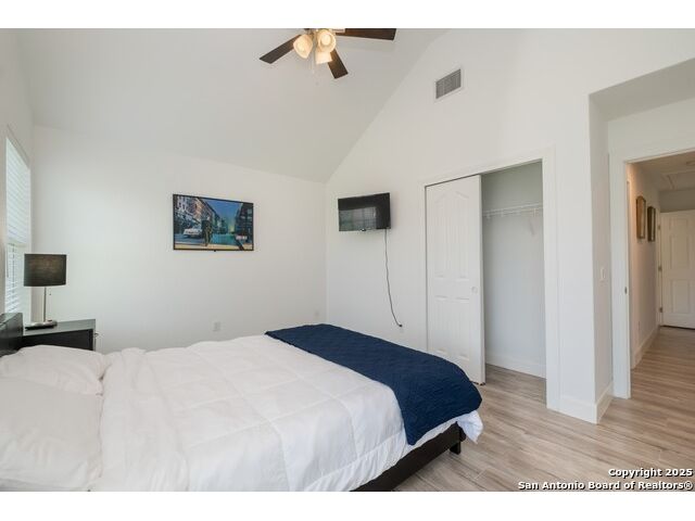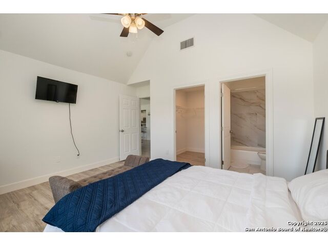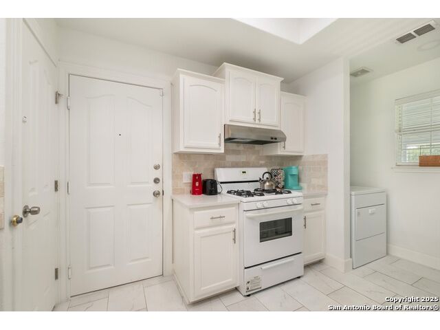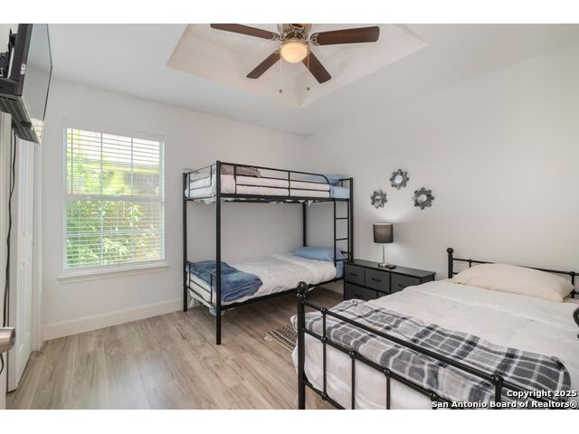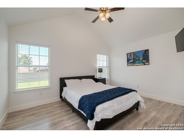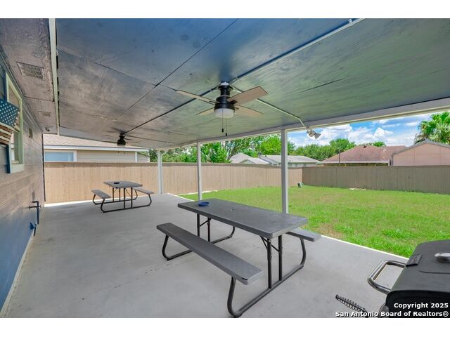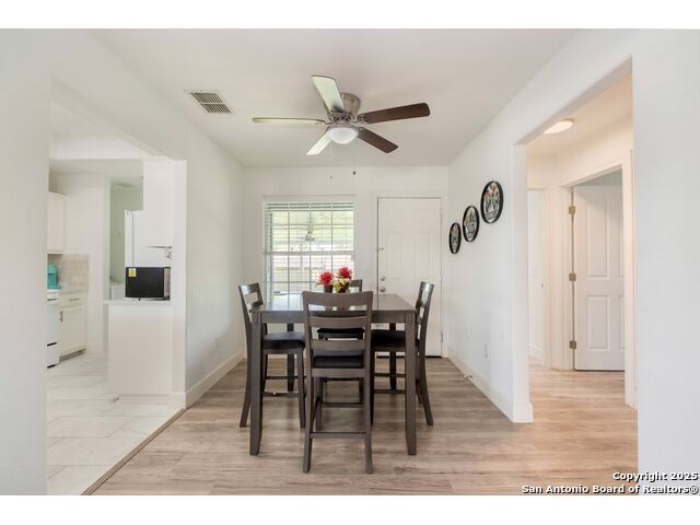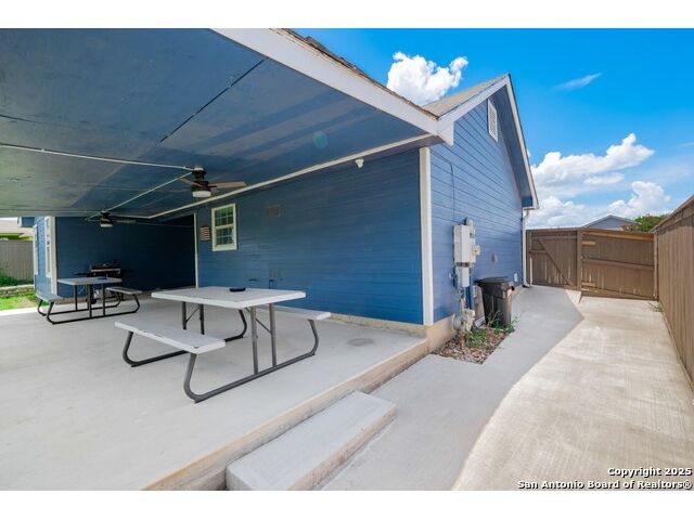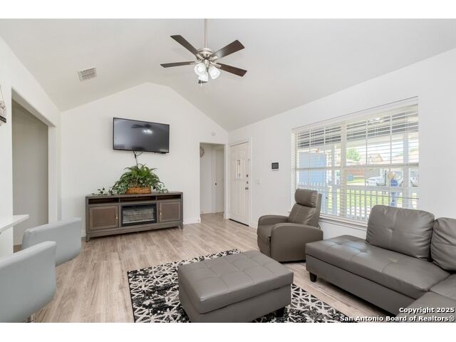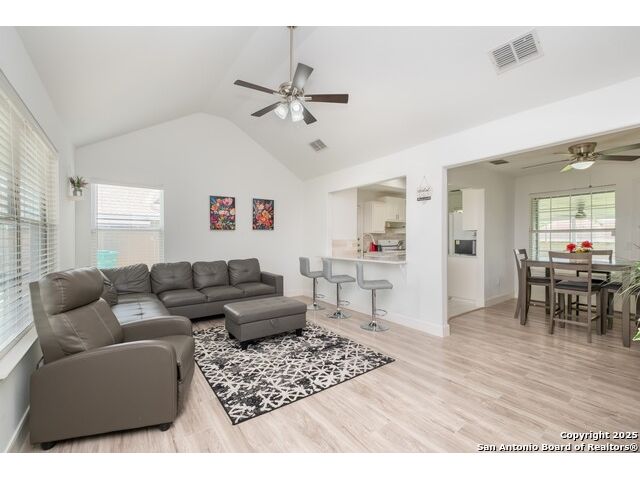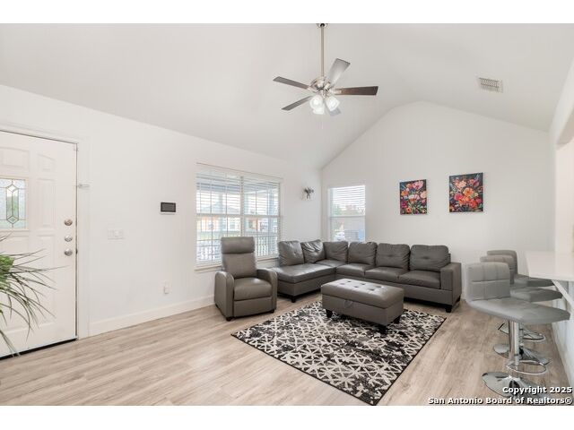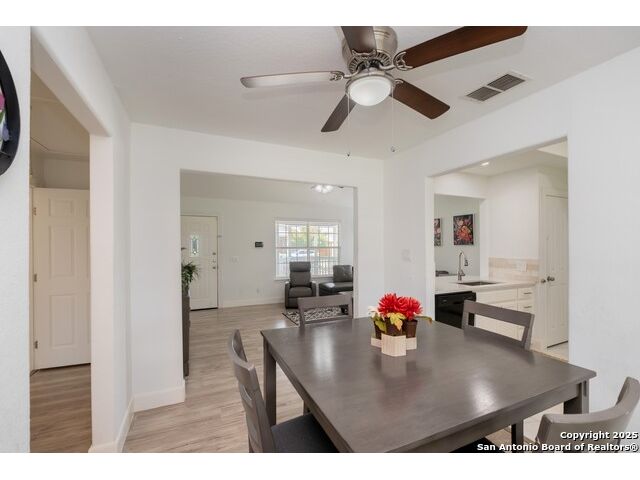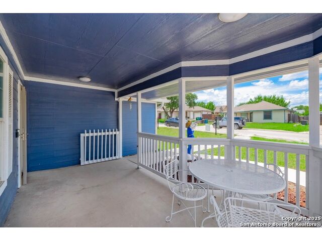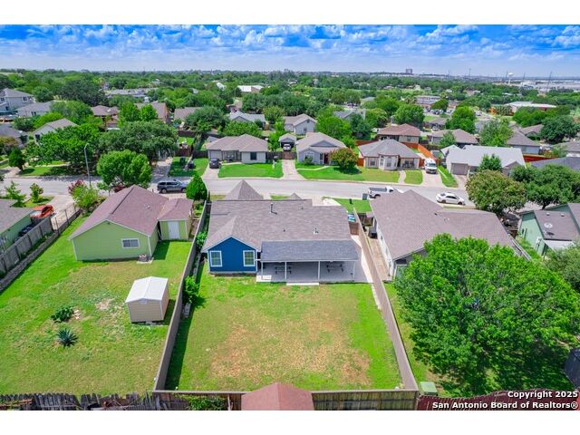 Discover this charming 3-bedroom, 2-bath farm-style home featuring high ceilings and an open floor plan. This single-story, vacant home offers 1,246 square feet of living space on a 0.16-acre lot and is move-in ready, with excellent potential as a primary residence, rental, or continued use as a successful Airbnb. Inside, the home features ceramic tile flooring throughout, creating a clean and cohesive look. The living area flows seamlessly into the kitchen, which includes a kitchen island, breakfast bar, and cabinet spaces. The primary bedroom offers a walk-in closet and an ensuite bath with a tub and shower combo and a single vanity. Enjoy the outdoors from the covered front porch or relax under the covered back patio overlooking the large backyard, which is fully enclosed with a wooden privacy fence. The yard provides plenty of space for a pool, garden, or even an additional dwelling unit, giving you room to grow and personalize. Additional highlights include a 1-car attached garage and a brand-new AC system for year-round comfort. Located just minutes from San Antonio's most popular attractions, including the Pearl District, AT&T Center, River Walk, and historic Amtrak station. This home offers convenience, character, and incredible investment potential. Don't miss your chance to own this beautifully maintained home in one of the city's most accessible locations.