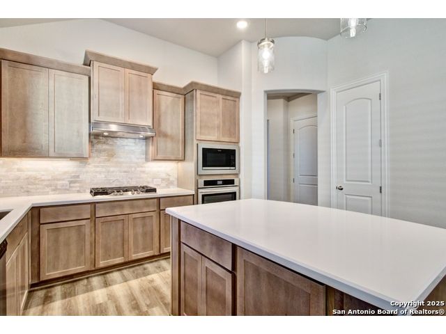 Welcome to this beautifully Laurel popular one story layout that is an upgraded 3 bedroom, 2 bath home by Brightland Homes, located in the highly desirable Veramendi community. With 2,016 SQFT of thoughtfully designed living space, this one story home offers comfort, style, and function. A stunning entry leads to an open concept layout with an office perfect for working from home or flexible use. The spacious Chef's Kitchen features 42" upper cabinets with crown moulding, a built in oven and microwave, and an upgraded layout ideal for cooking and entertaining. The owner's suite includes an upgraded bathroom with elegant finishes, dual sinks, and a large shower. Large windows throughout bring in natural light, enhancing the home's warm and inviting feel. Enjoy community amenities and trails in one of the area's most sought after neighborhoods. This home is located in the master planned community known as Veramendi. Veramendi residents enjoy amenities such as a resort style community pool, coffee shop and breakfast restaurant, and an upcoming word park with acres of community paths and trails.