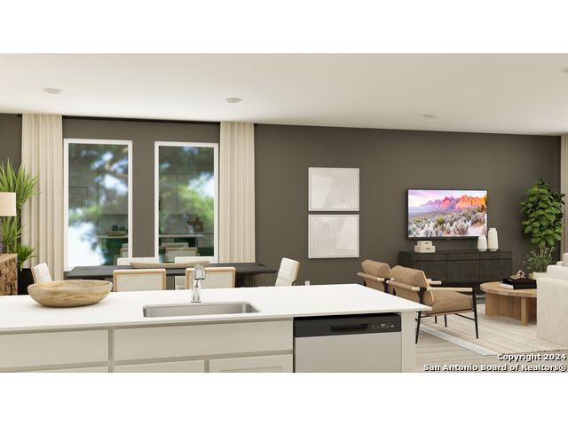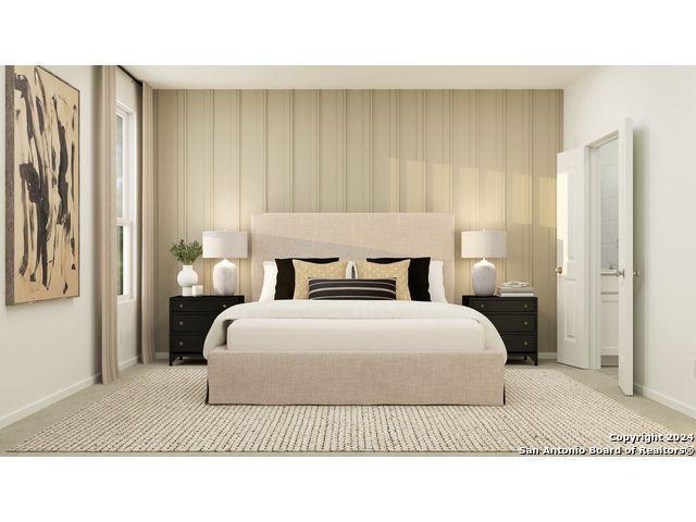 The Navarre- This new single-level home boasts a modern and low-maintenance design. Three secondary bedrooms are located off the foyer, with a nearby study perfect for focusing on important tasks throughout the week. An inviting open-concept living area combines the kitchen, living and dining areas, with a nearby covered patio ready for outdoor entertainment and leisure. A lavish owner's suite completes the home, offering direct access to an en-suite bathroom and generous walk-in closet. Prices and features may vary and are subject to change. Photos are for illustrative purposes only.