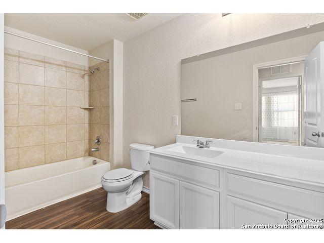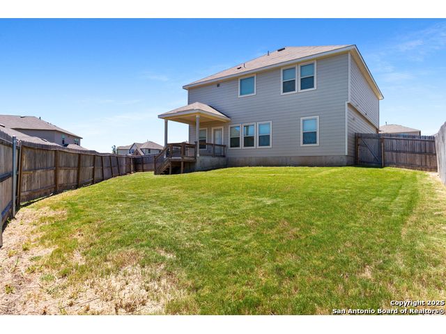 **$5,500 below independent appraisal** Spacious 5-bedroom, 3-bath home with a dedicated office, located on a .26-acre lot with over 2,800 sq ft of well-designed space. Ideal for growing or multigenerational households, this home features two living areas, an open-concept kitchen with solid-surface countertops, stainless appliances, and a large island perfect for gatherings. Downstairs includes a guest suite and office with French doors. Upstairs offers a versatile loft and generously sized bedrooms. The primary suite features a double vanity, soaking tub, separate shower, and walk-in closet. Enjoy outdoor living on the covered back patio overlooking a large backyard. Wood-look flooring in main areas, water softener, and 2-car garage complete the package. Located in a quiet community with easy access to major highways, schools, and shopping-this move-in-ready home checks all the boxes for comfort, space, and value.