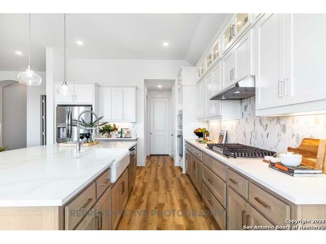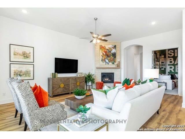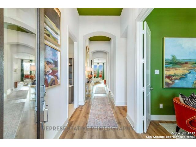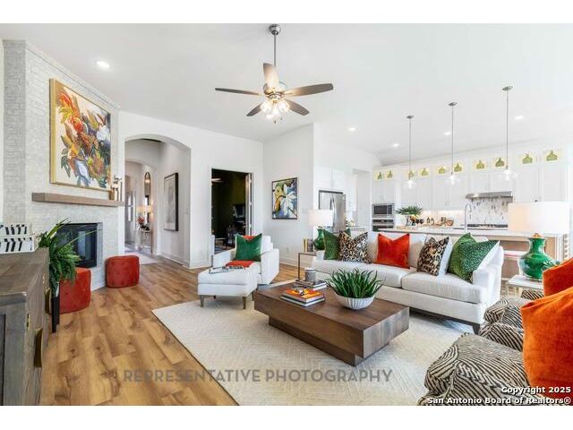 This ONE level brick home features light wood floors, entertainment room, home office, brick fireplace, free standing tub in primary bath, neutral interior palette, expanded bedrooms and backs to a tree filled greenspace. Home under construction with estimated December completion.