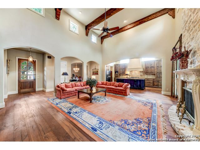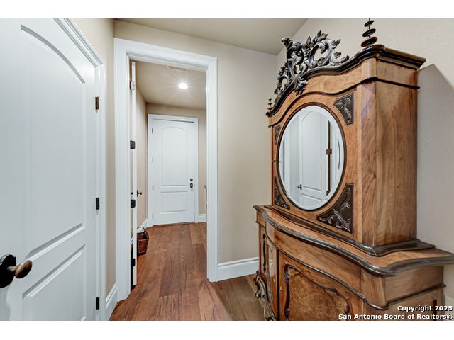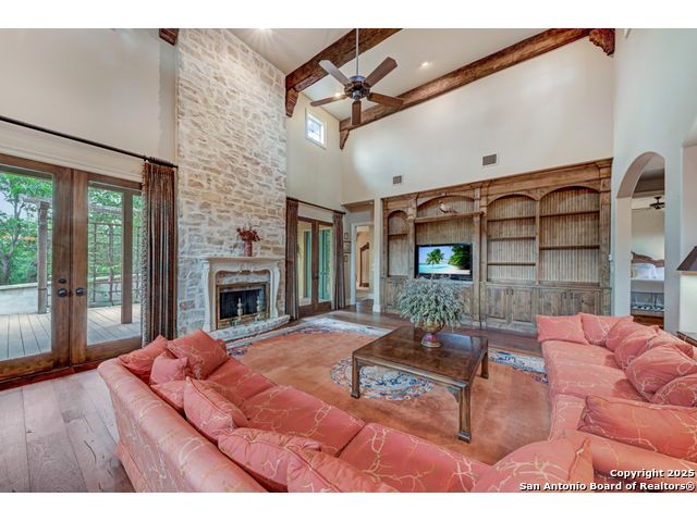 Nestled in a quaint Tuscan-style neighborhood, this builder's custom home offers timeless elegance with a modern open-concept layout. Thoughtfully designed with high-end European finishes throughout, every detail speaks of craftsmanship and sophistication. The inviting casita features its own living room, spacious bedroom, large walk-in closet, and a convenient mini fridge. Perfect for guests, multi-generational living or private home office. Enjoy exclusive tree covered access to the beautiful crystal clear Comal River, adding leisure and lifestyle to an already desirable location.