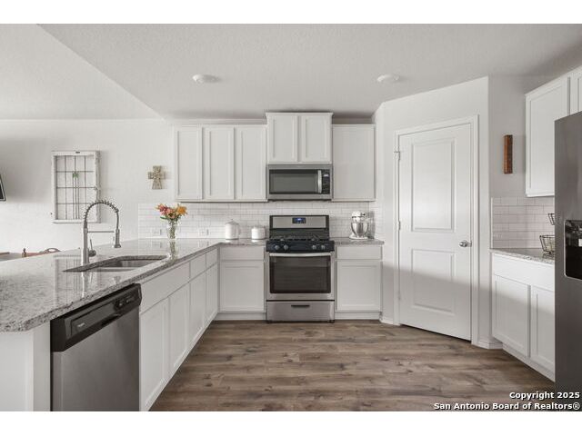 This charming, 2 story home features 4 bedrooms & 2 1/2 full baths & living area and dining on the entry level. Efficient kitchen is adjacent to living areas so the cook is never left out of a gathering! There is a covered patio outdoor area very suitable for barbecues, events, etc. Updated wood-look flooring, beautiful front & back yards -fully fenced backyard, perfect for kids and pets. Great LOCATION! Easy access to US 281 HWY. A direct 20 minute drive to San Antonio Airport and Downtown of San Antonio. This one won't last long!
