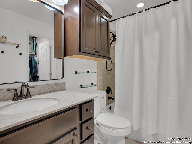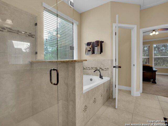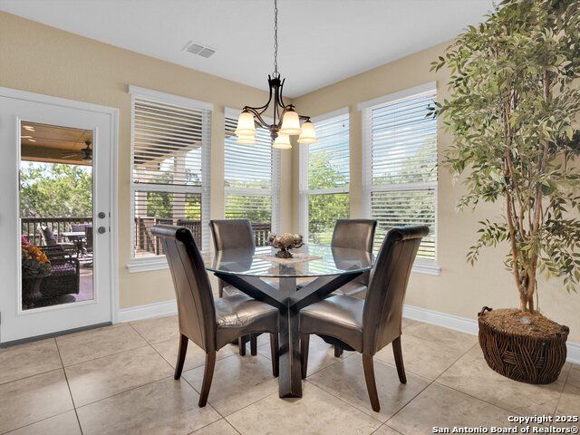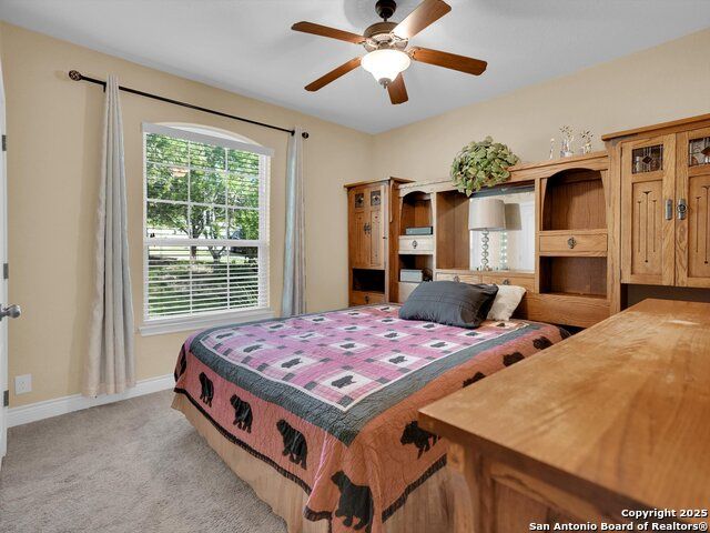 Welcome to this stunning and well-maintained home in Timberwood Park. This property features 4 bedrooms and 4 full baths, along with a media room and a 2-car garage. The elegantly designed two-story residence perfectly combines style, comfort, and functionality. The light-filled, open floor plan includes a spacious dining area and a kitchen with granite countertops that flows seamlessly into the breakfast area and living room. The living room, highlighted by a beautiful brick fireplace and high ceilings, creates an inviting atmosphere.The spacious backyard is complemented by mature trees and includes a patio deck measuring 35 by 50 feet. A portion of the patio is covered and equipped with surround sound speakers, providing the perfect ambiance for enjoying relaxing music. Additionally, there is a large storage area located beneath the deck, making it ideal for outdoor living. The Timberwood Park community offers exceptional amenities, including a private park, swimming pool, a fish-stocked lake, pickleball courts, basketball courts, volleyball courts, tennis courts, and a 6-hole golf course. The community also features a playground and clubhouse, and the home is situated within a highly-rated school district.