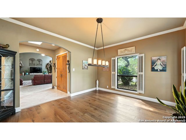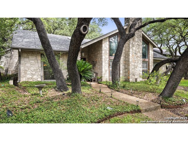 ELEGANT & UNIQUE ONE STORY HOME IN CHURCHILL ESTATES. Welcome to this spacious 3 bedroom, 2.5 bath home filled with charm and custom craftsmanship. Nestled among mature oak trees, the striking stone exterior sets the tone for what's inside. This thoughtfully designed home features a formal dining room and a functional layout with abundant built-ins and storage throughout. Enjoy a dedicated coffee/wine bar, skylight-filled the entry way, and a Jack & Jill bathroom, ideal for family or guests. The expansive master suite offers a luxurious bath and an oversized walk-in closet with custom built-ins. Also includes a skylight, bringing in beautiful natural light. Step outside to a beautifully landscaped backyard with a peaceful fountain, lush greenery, and a cozy patio perfect for relaxing or entertaining. A truly one of a kind home in the desirable Churchill Estates neighborhood with great amenities like pool, tennis court, playground, jogging trails and more. ADT security system owned and can be re-activated if the buyer chooses to do so.