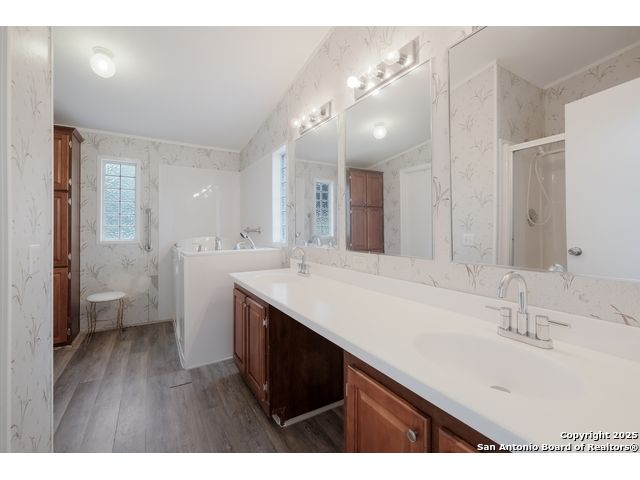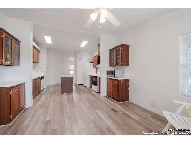 This spacious one-story home offers 4 bedrooms and 3 full bathrooms, perfectly situated on a 1.14-acre corner lot with beautiful wooded and country views. Enjoy the peace of no city taxes and the added security of a gated neighborhood with controlled access. The property features a triple wide home with a brand-new HVAC system and updated ducts, making it move-in ready and available for FHA purchase. This charming residence combines comfort, privacy, and convenience, making it an ideal retreat for those seeking space and tranquility.