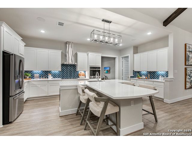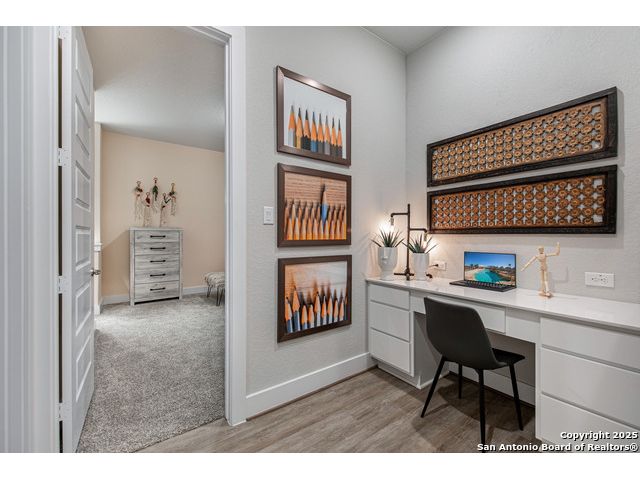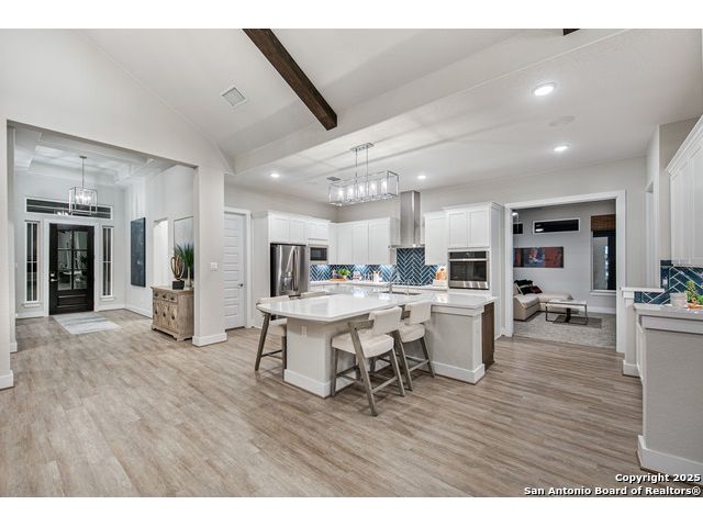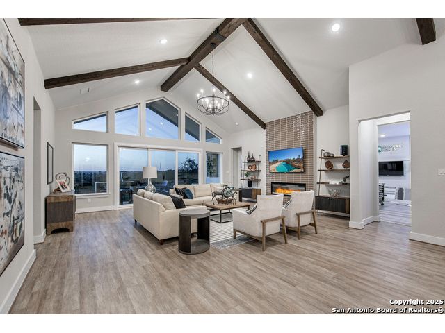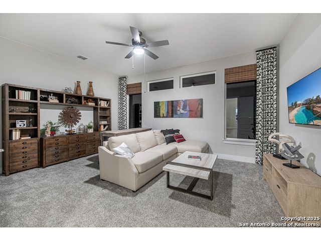 *Move in Ready!* Some photos are not of actual home* Sitting on a green belt, Our newest one-story floor plan, the Gregory! This home is for those who share a love of cars because this plan has made extra car storage possible! The home itself continues to showcase popular features such as vaulted ceilings, a huge kitchen island, an area that opens up to the family and dining area, an outdoor patio to give you views of the hill country, and much more! With 4 bedrooms, 3 and a half bathrooms, a flex room, formal study, and even a tech center, you have plenty of space to entertain family or work from home.