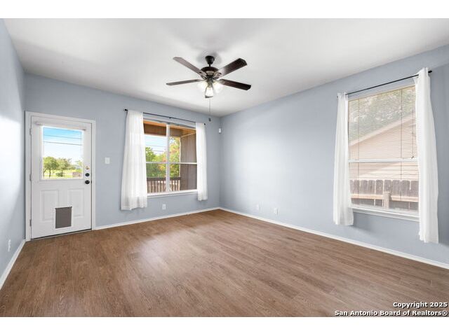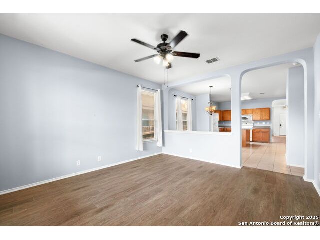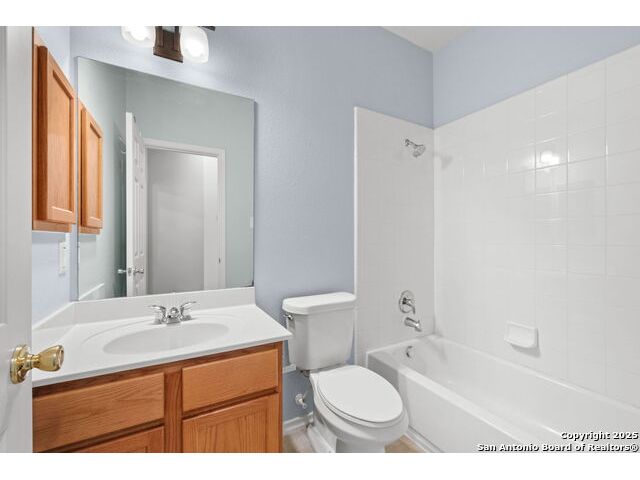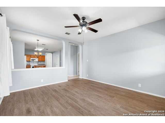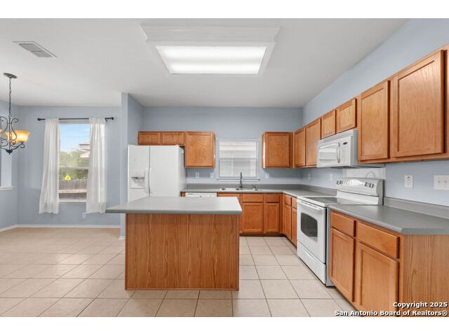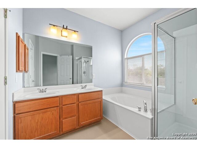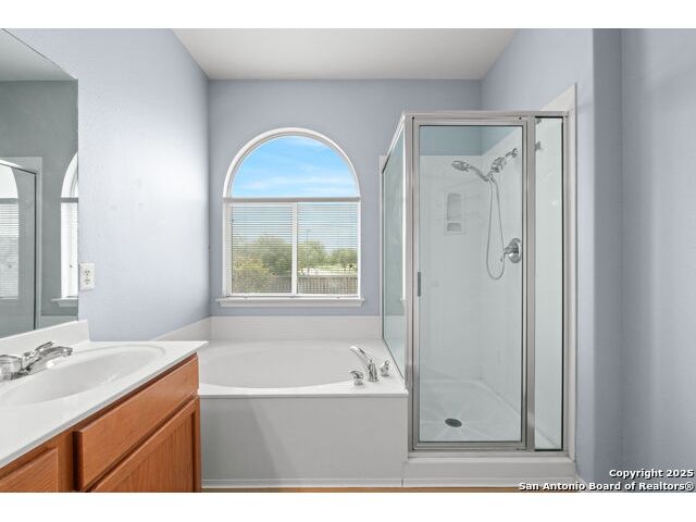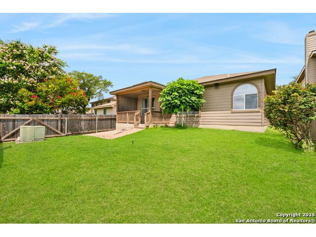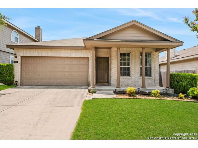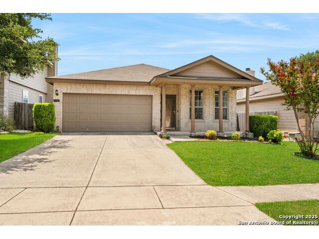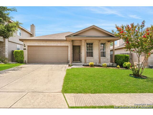 ** OPEN HOUSE on Sunday, December 7, 2025 from 2-4 pm ** Enjoy solar-powered living in the Steubing Ranch community! This 3-bedroom, 2-bath home features 1,668 square feet of living space and includes solar panels for added energy efficiency. This meticulously maintained, open-concept layout offers two main living areas, a formal dining room and a breakfast nook. The split primary suite includes a walk-in closet, double vanity, garden tub and separate shower. A dedicated utility room adds convenience, and the attached 2-car garage provides parking and storage. The backyard is fully enclosed with a privacy fence and a covered deck with no rear neighbors-just open field views! With quick access to Loop 1604 and community amenities including a pool, park, and jogging trails, this home combines a comfortable layout with a prime location. $20k of solar panels - paid off & convey with sale!