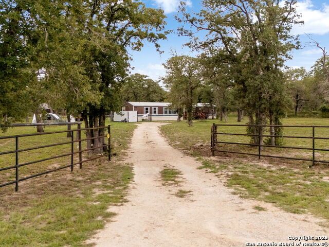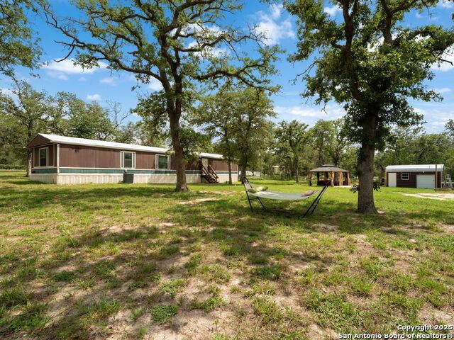Welcome to 181 Oak Valley Dr - a beautifully maintained single-side manufactured home tucked away on 1.7 fully fenced acres in the heart of La Vernia. This property offers the freedom of no HOA and is located in the highly regarded La Vernia ISD, making it an excellent option for families seeking space and quality education. Step inside to find a home that's been lovingly cared for and ready for its next chapter of hill country living. The backyard is a true highlight, featuring a concrete slab with a stunning gazebo - ideal for hosting guests, relaxing under the stars, or enjoying cozy nights by the firepit. A metal tool shed provides plenty of room for storing lawn equipment and tools. Whether you're dreaming of a peaceful retreat or a place to grow and entertain, the possibilities are endless with this spacious, country property. Come experience the benefits of rural living just a short drive from the conveniences of town.