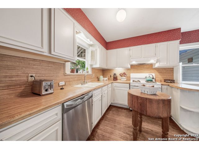 Unlock the potential in this charming Alamo Heights ISD home! Nestled on a spacious 0.24-acre lot, this 3-bedroom, 2-bath gem offers timeless appeal, a highly functional layout, and a prime location in one of San Antonio's most sought-after school districts. Step onto the classic rocking chair front porch and into a home full of natural light, original hardwood floors, and two generously sized living areas-perfect for relaxing or entertaining. The eat-in kitchen provides a cozy, casual dining space, while the spacious bedrooms and thoughtful floorplan offer everyday comfort. Outside, enjoy a large, beautifully shaded backyard, ideal for gardening, gatherings, or future expansion. A detached 2-car garage and extended driveway provide plenty of parking and storage. This property is a true fixer-upper, ready for your updates and personal touch-whether you're an investor, renovator, or buyer looking to build equity in a premier location. Don't miss this rare opportunity to reimagine a classic home in Alamo Heights ISD!