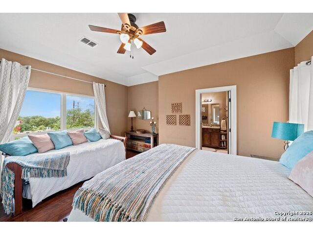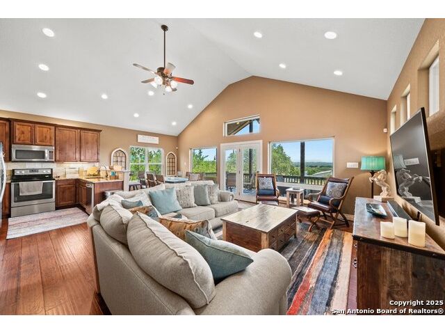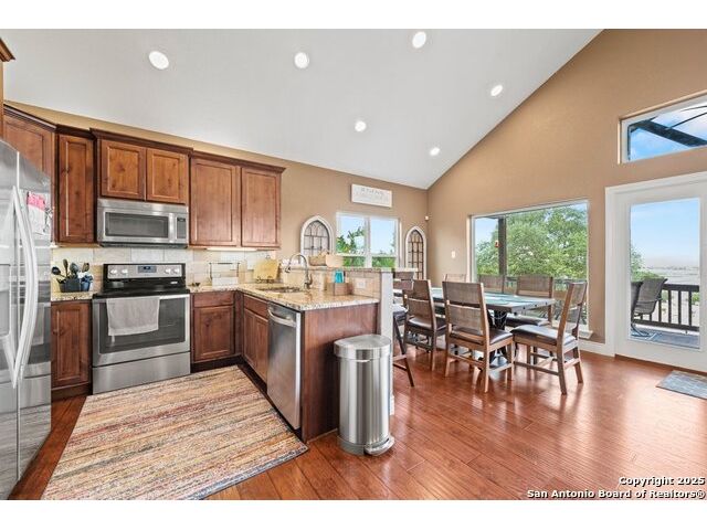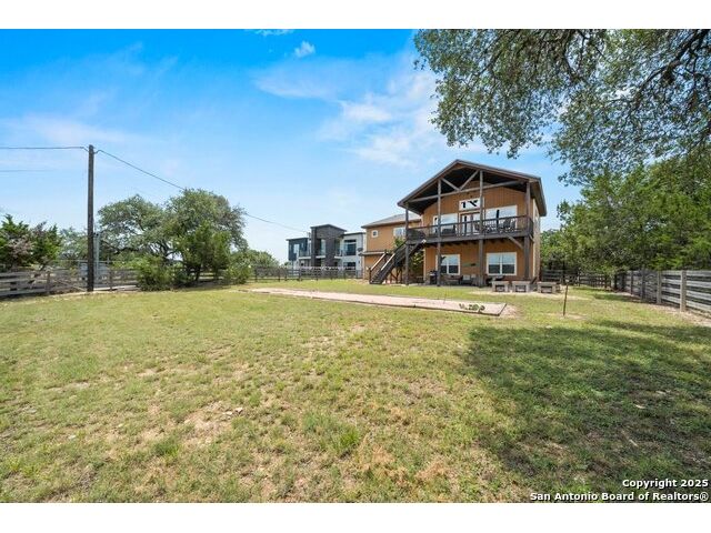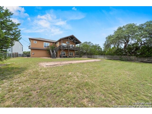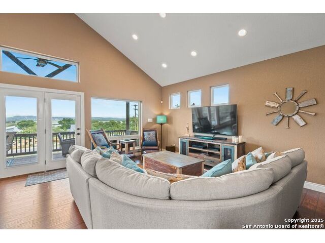 Take in breathtaking sunrise and sunset views over the turquoise waters of Canyon Lake from this beautifully positioned 3-bedroom, 2.5-bath home. Sitting on a rare street-to-street lot just under half an acre (.44 acres) with no mandatory HOA, this property offers space, flexibility, and stunning views in the sought-after Canyon Lake Island subdivision near Potters Creek. Designed with an upside-down floor plan, the kitchen, living, and primary suite are all located on the second floor to fully capitalize on the panoramic lake views. Soaring ceilings, floor-to-ceiling windows, and expansive upper and lower decks make this home perfect for relaxing or entertaining. Two secondary bedrooms are located downstairs, offering a private retreat for guests or family. Interior features include stained concrete and laminate wood flooring, granite countertops, and stainless steel appliances-all within a bright, open layout that maximizes comfort and natural light. With the lake rising again thanks to recent rains, now is the perfect time to enjoy lake life. There's ample space to park your boat or lake toys, and the nearest boat launch is just 5 minutes away (currently closed), with others only a short drive farther. As a resident, you'll also enjoy access to a private lake park, perfect for picnics, swimming, and soaking up the scenic shoreline. Plus, you're just minutes from the marina, local restaurants, and the grocery store.