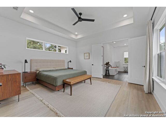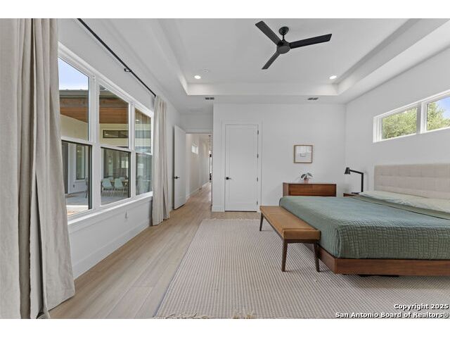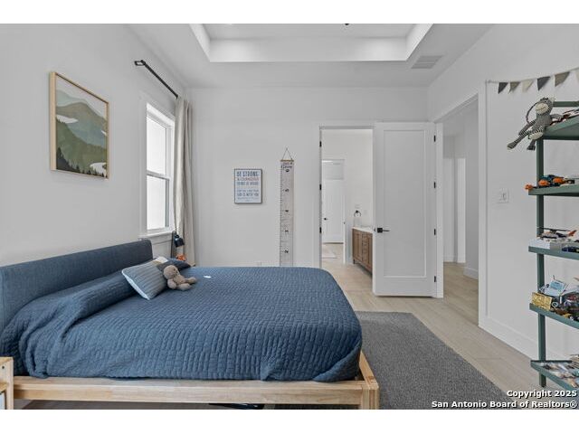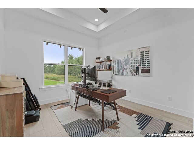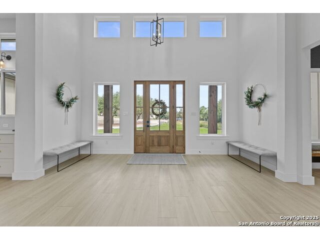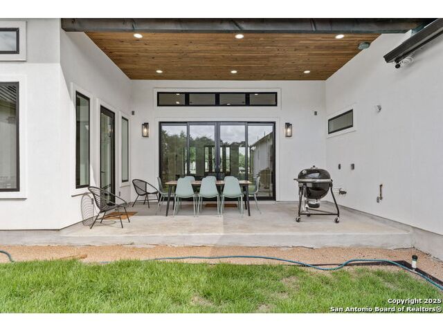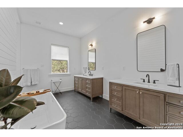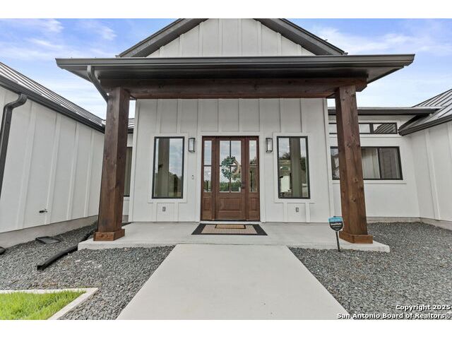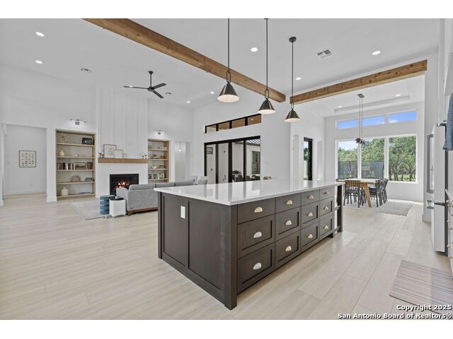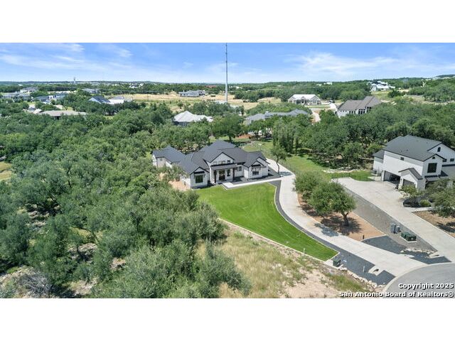 Tucked away at the end of a quiet cul-de-sac in the master-planned Belle Oaks community, this custom-built, single-story home by award-winning Bourn Homes offers a refined take on modern Hill Country living. From the moment you enter, soaring ceilings and natural light create a sense of space and calm, balanced by curated finishes and thoughtful touches throughout. Inside, you'll find a calm, elevated aesthetic - from a chef-worthy kitchen with custom cabinetry to cozy living spaces, ideal for entertaining, unwinding, or simply enjoying a slower pace. The expansive primary suite offers a serene escape with a spa-inspired bath with a freestanding tub and dual walk-in showers. Each bedroom feels like a retreat with walk-in closets, high tray ceilings, and wired for today's tech. Beyond the walls, the home is built for both now and what's next: Pool-ready utilities and a patio prepped for your dream outdoor kitchen. Finished garage with epoxy floors, metal roof, and conditioned attic. This home was built to perform! With resort-style amenities like pickleball courts, pool and other outdoor activities, highly rated schools, and easy access to San Antonio and Hill Country destinations, this home isn't just beautifully built - it's beautifully located!
