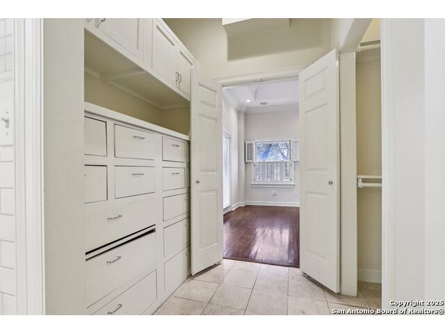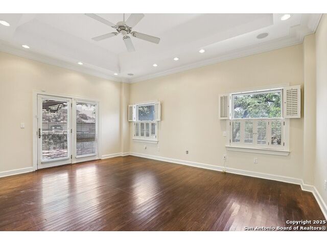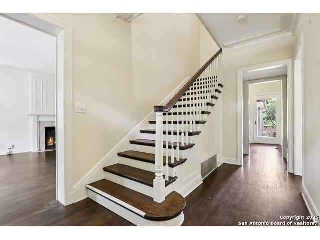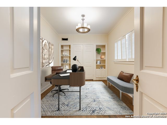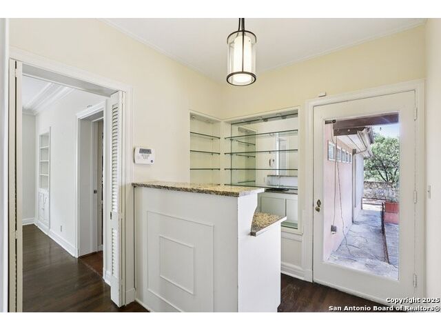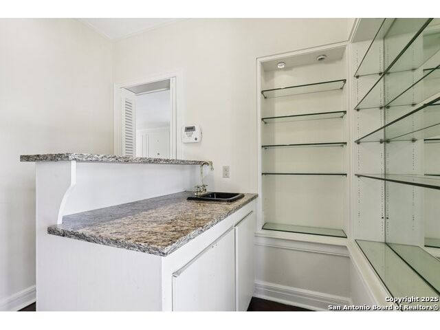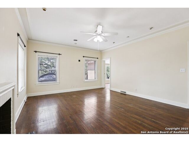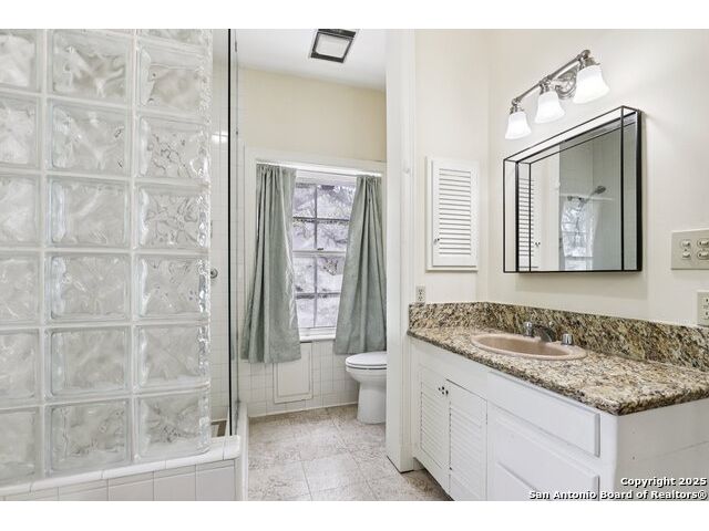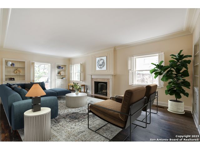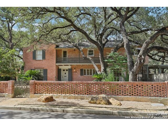 Nestled in the coveted Monte Vista neighborhood, this timeless 1938 residence seamlessly blends historic charm with modern comforts. Boasting 5 spacious bedrooms, 4.5 bathrooms, and two luxurious primary suites, this home offers an ideal layout for both family living and entertaining. Step inside to experience craftsmanship rarely seen in today's construction-solid concrete walls, a sturdy concrete pier-and-beam foundation, soaring high ceilings, and exquisite hardwood floors. The home is further elevated by elegant trim and custom built-ins, showcasing meticulous attention to detail throughout. Surrounded by majestic mature oak trees, this property offers unmatched privacy and a serene atmosphere, creating a peaceful retreat right in the heart of the city. Enjoy outdoor dining and relaxation on the charming patio, or explore the low-maintenance xeriscaped landscaping, designed to thrive with minimal upkeep. Additional features include a detached two-car garage and a private one-bedroom casita, perfect for guests, a home office, or as a rental opportunity. Living in Monte Vista means you're just minutes from downtown San Antonio, with easy access to the city's finest dining, shopping, and cultural destinations. This home truly embodies the elegance and tranquility of one of San Antonio's most desirable neighborhoods.