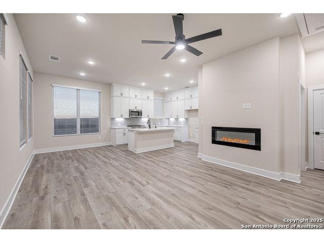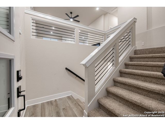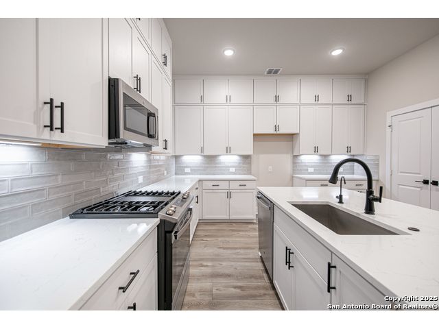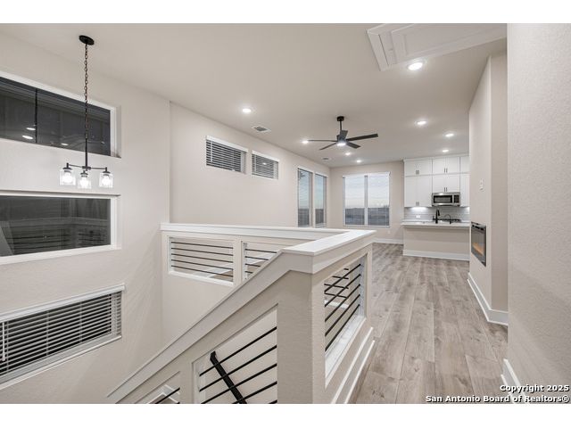 Move in Ready! Beautiful Home on a corner lot very Close to the Medical Center, UTSA, USAA and More! Two-story home with 3 bedrooms, 2.5 baths, 2-car garage, first floor covered patio, plus a giant flex room is the most popular plan in the neighborhood! The open concept, second floor kitchen overlooks the family room and a dining room framed by extra-large windows. The master suite boasts TWO walk-in closets, a double vanity, and walk-in shower. The first-floor features two secondary bedrooms designed with plenty of space for kids or guests.