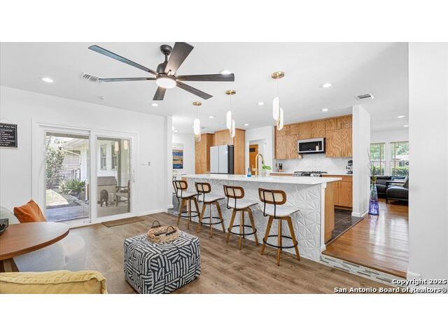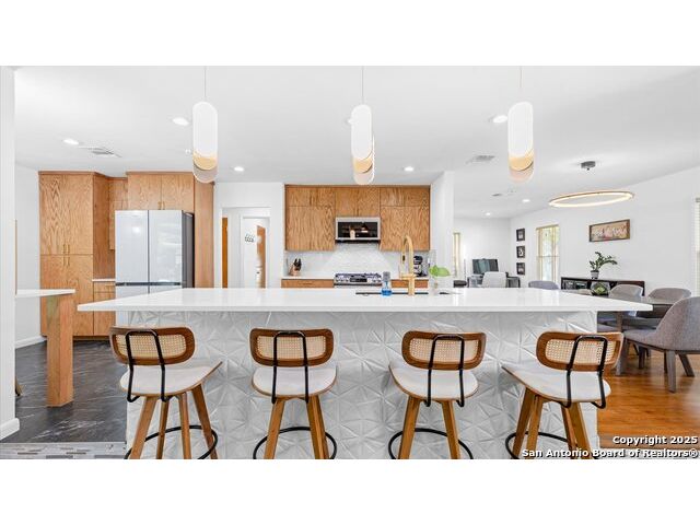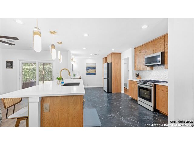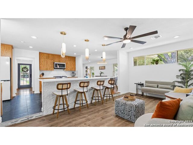 Welcome to 303 Ridgehaven Pl - Where modern updates meet prime location. This charming one-story home on a corner lot in the desirable Northridge Park community has been completely reimagined for today's lifestyle. With 1,712 sqft of thoughtfully updated living space and a 2-car garage, every detail reflects quality craftsmanship and care. Step into a kitchen and dining area that feels brand new-gutted to the studs and rebuilt with custom cabinets, sleek countertops, new appliances, fresh flooring, and even a small bar table perfect for morning coffee or evening gatherings. The transformation continues throughout with fresh paint, new baseboards, and an all-new electrical system to give peace of mind. Outside, the curb appeal shines with a brand-new roof, gutters, and a fully repainted exterior. Sprinkler Sys with enhanced with new irrigation, keeping your yard lush year-round. Comfort was top of mind in every update-from the brand-new HVAC system and insulation to a new water heater and ceiling fans in every room. And for those who love indoor-outdoor living, a sliding glass door opens to the backyard, seamlessly blending the interior with your outdoor space. Garage features recent insulation and sheetrock. Seller has protested Tax Value which equals Savings for you! All of this in a prime location-just minutes from The Pearl, Central Market, Incarnate Word, The Quarry and Airport. This isn't just a home; it's a completely refreshed lifestyle in the heart of San Antonio.