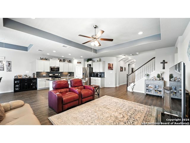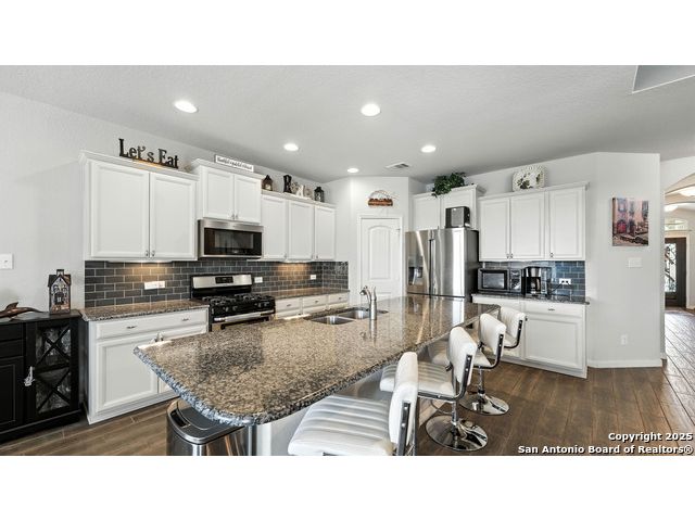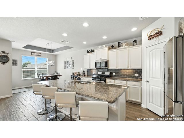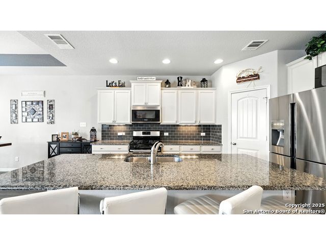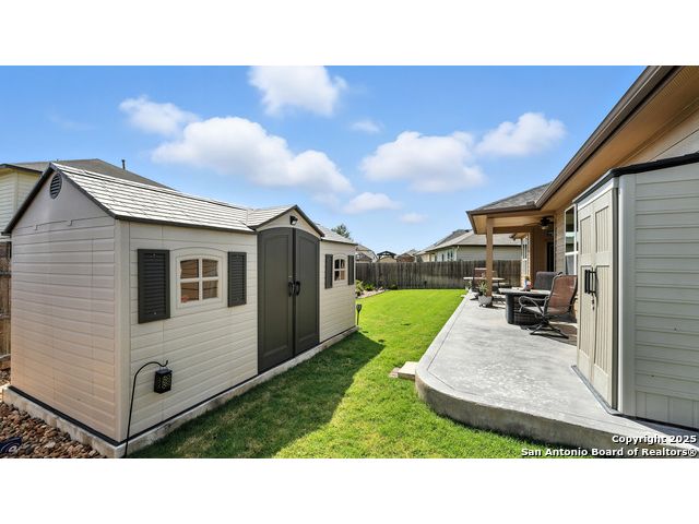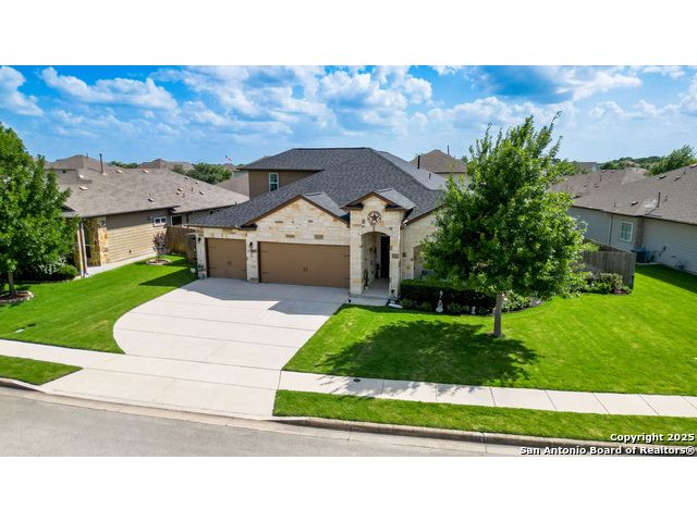 Welcome to this stunning and well-maintained 1.5-story home located in the highly sought-after Oak Creek Estates subdivision, just minutes from historic Gruene. Featuring a brand-new roof (installed approximately two months ago) and a recently added water heater (about one year old), this home is truly move-in ready. The layout is both spacious and functional, offering four generously sized bedrooms all on the main floor, 2.5 bathrooms, and a versatile upstairs loft perfect for a guest suite, home office, or media room. The expansive primary suite includes dual vanities and two walk-in closets, providing plenty of comfort and storage. At the heart of the home is a bright, modern kitchen with sleek subway tile, stainless steel appliances, and a smart microwave that doubles as a convection oven-ideal for both everyday meals and entertaining. The open-concept living area seamlessly connects the kitchen, dining, and living spaces, creating an inviting atmosphere throughout. Outside, you'll find a fully landscaped yard with a full irrigation system, a spacious backyard shed, and an extended patio perfect for outdoor living and entertaining. A powerful 22 KW Generac whole-home generator ensures peace of mind during outages. With quick access to I-35, you're perfectly positioned just minutes from Austin, San Antonio, and everything New Braunfels has to offer. This beautiful home combines comfort, style, and convenience-don't miss the opportunity to make it yours
