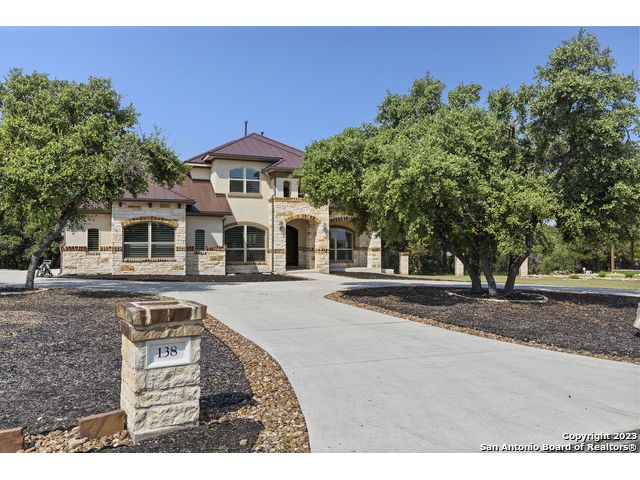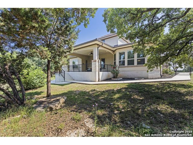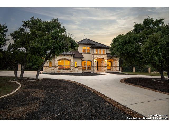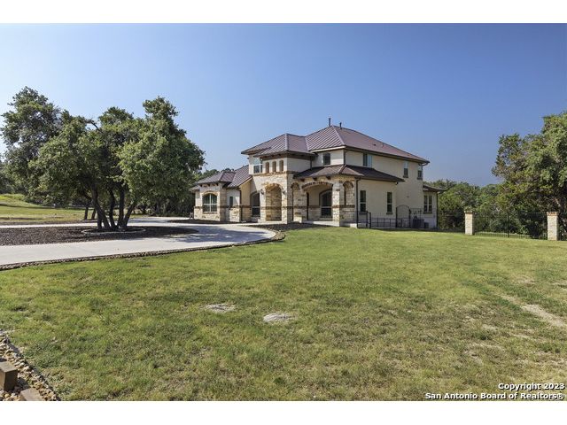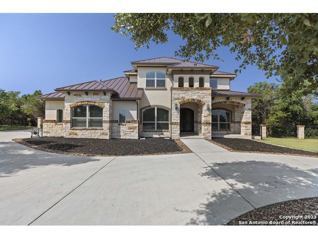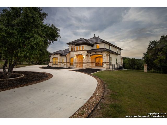 Discover your private sanctuary in this stunning custom estate with sweeping Canyon Lake views, positioned on over an acre within the exclusive, gated Oak Shores Estates community. This meticulously crafted Hill Country retreat features sophisticated stone and stucco architecture with elegant Juliet balconies, expansive living spaces showcasing superior craftsmanship, and a grand living room perfect for entertaining. The gourmet chef's kitchen boasts premium finishes and high-end appliances-all included with the home, plus refrigerator, washer, and dryer for truly move-in ready luxury. The thoughtful floor plan includes a versatile upstairs bonus room ideal as a fourth bedroom, home office, or media room, while the three-car garage provides ample storage for vehicles and recreational equipment. As an Oak Shores Estates resident, enjoy exclusive access to the tranquil community pool and clubhouse-your private retreat without the crowds. This is more than a home-it's the perfect fusion of privacy, luxury, and natural beauty that defines Canyon Lake living at its finest. Seller is open to offering a credit to help with closing costs or a rate buy down.