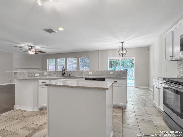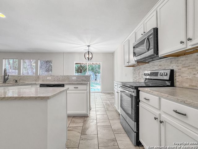 Spacious 4-Bedroom Home Backing to Greenspace. Welcome to this beautifully updated 4-bedroom home offering the perfect blend of comfort, style, and convenience. Step inside to discover a bright open-concept floor plan with no carpet throughout, ideal for both everyday living and entertaining. The island kitchen is the heart of the home, featuring marble countertops, modern finishes, and plenty of workspace for the home chef. Enjoy the serenity of a private backyard that backs up to a lush greenbelt, providing added privacy and a peaceful view. Located in a guarded-access neighborhood, residents enjoy access to fantastic community amenities including a park, playground, and sports court. Tucked away in a quiet area yet just a short drive from shopping, dining, schools, and more, this home offers the best of both worlds-tranquil living with urban convenience. Don't miss your opportunity to own this move-in-ready gem!
