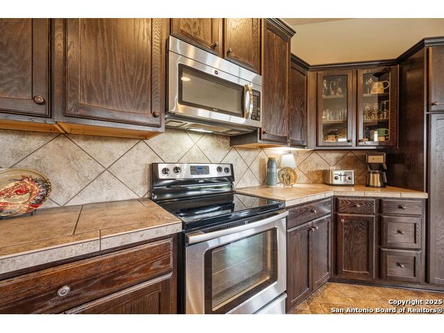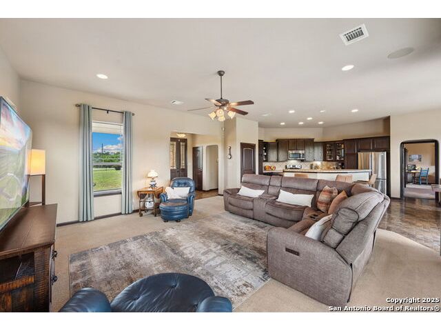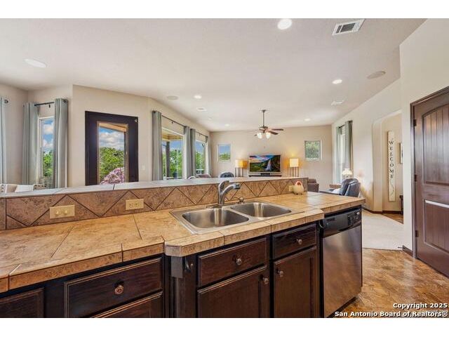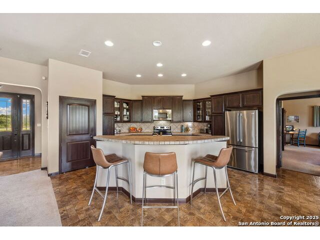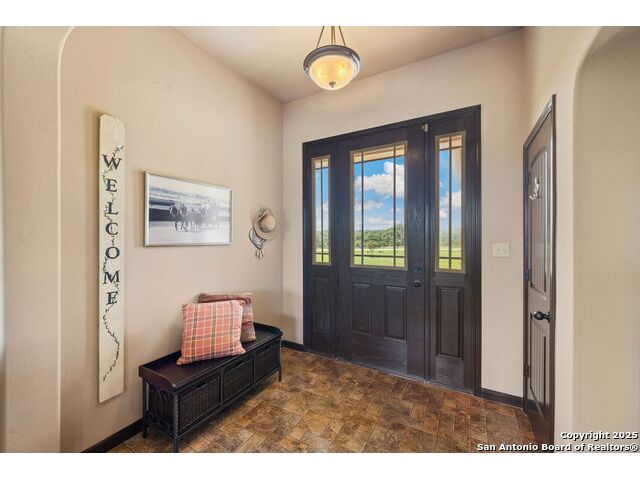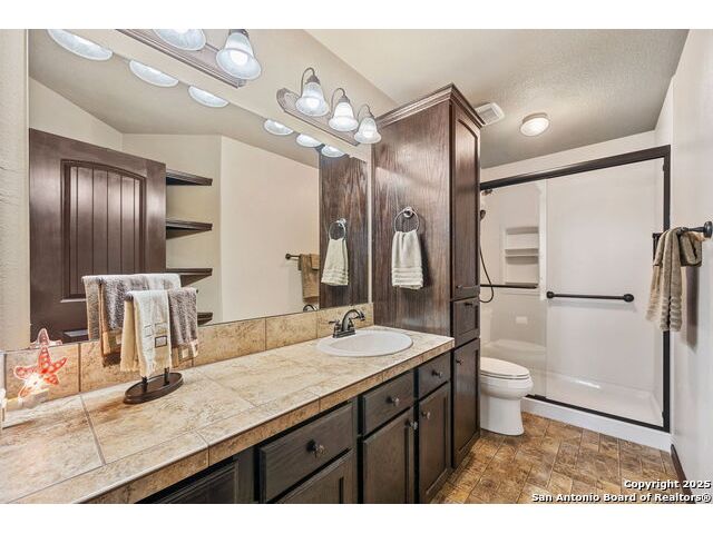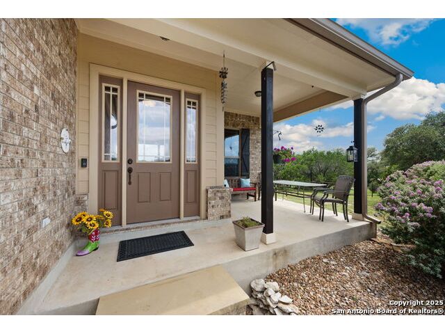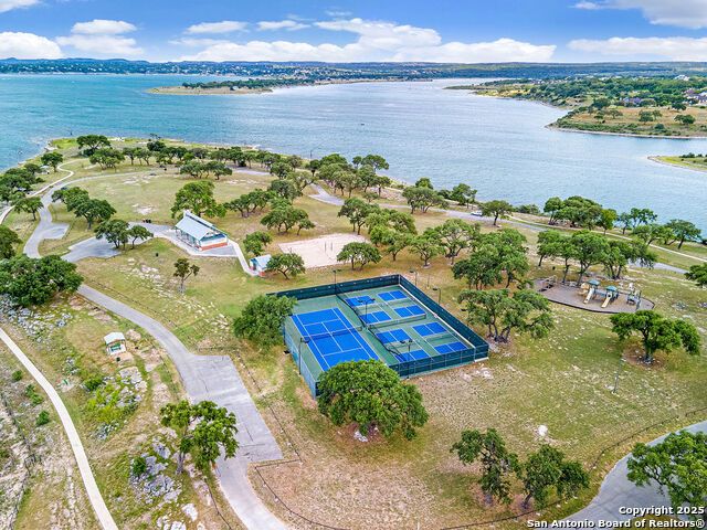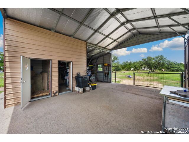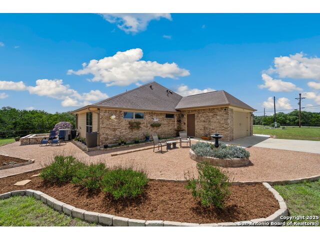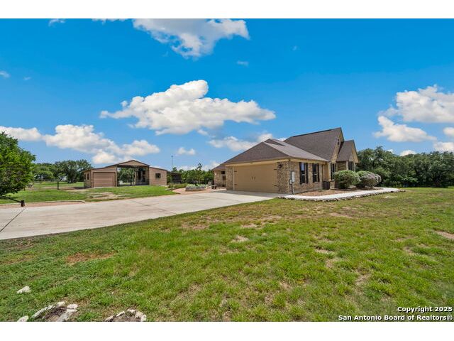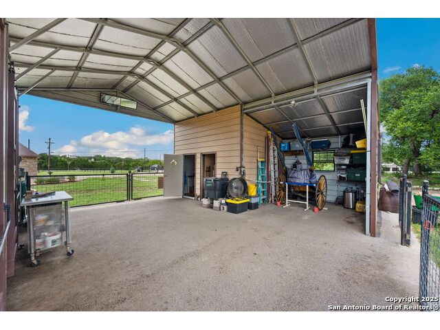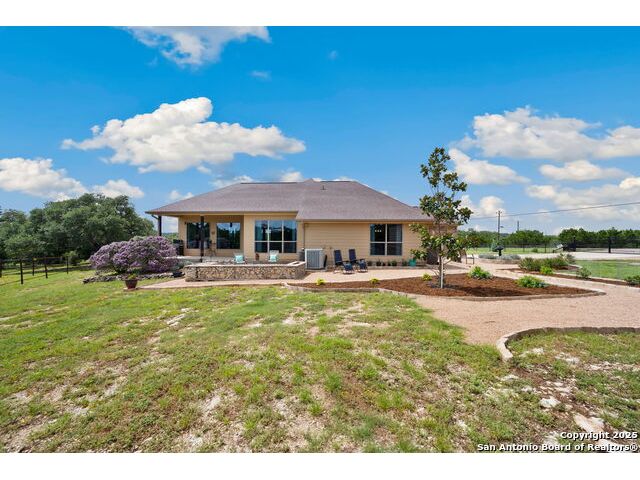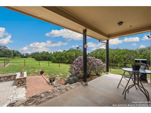 Welcome to your dream retreat in the heart of the Texas Hill Country. Set on 3 fully fenced acres, this turnkey property offers the perfect combination of comfort, functionality, and natural beauty. The 2,010 sq ft home features a well-designed split floor plan with 3 bedrooms and 2 bathrooms, including walk-in showers in both baths and a spacious primary suite with dual sinks. Large windows throughout the home provide stunning views of the surrounding acreage and mature trees, filling the space with natural light and a sense of tranquility. The property features a 42x26 metal building currently used for 2 horses, with attached 12x26 run-in stall (convertible to two 12x13's), separate enclosed hay storage area, large tack room, water and electric. This building can also be used for MULTI PURPOSE storage or workspace, as well as for other animals enrolled in 4-H and FFA school sponsored programs.. The land is perimeter fenced with durable pipe rail and woven wire, plus electric tape cross fencing for added safety and flexibility. Equestrians will appreciate the 100' x 200' natural footing riding area, ideal for training or leisurely rides. The level lot is shaded by beautiful, mature trees, offering a peaceful and picturesque setting that's rare to find. Whether you're riding in the pasture, taking in the view from the comfort of your living room, or simply enjoying the quiet, this property has everything you need to live the Hill Country lifestyle. Located in Mystic Shores-one of the Hill Country's premier communities-residents enjoy world-class amenities including two swimming pools, tennis, pickle ball, basketball, and volleyball courts, a community center, two lakeside parks with grilling and picnic areas, and a 200+ acre nature preserve. This is a rare opportunity to own a ready-to-go horse property (only 2 horses allowed for this size lot) in one of Texas's most scenic regions.