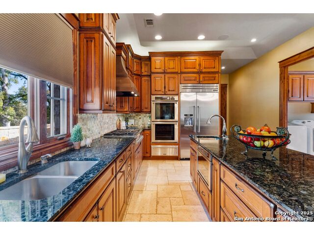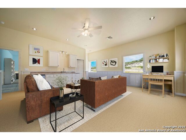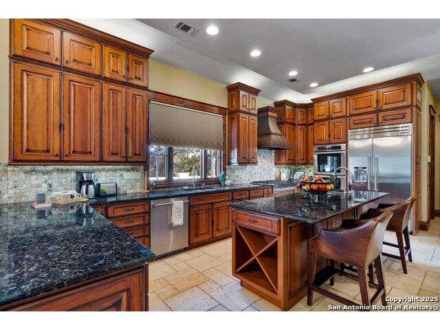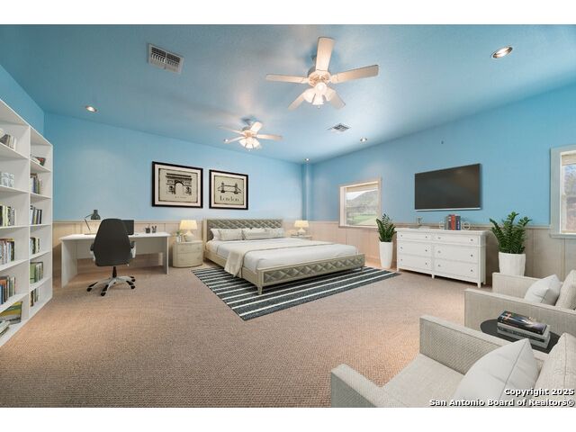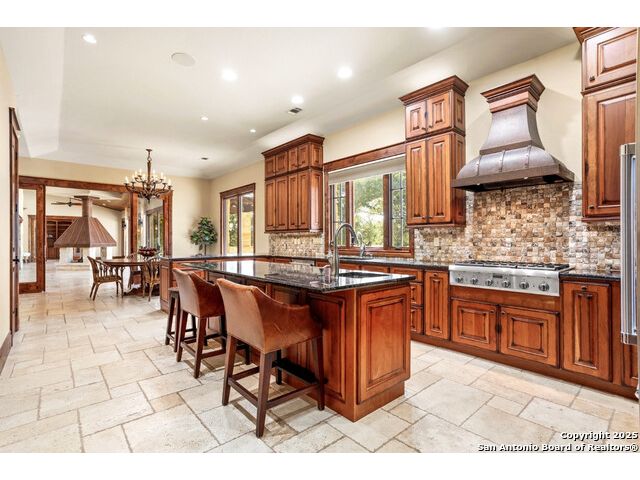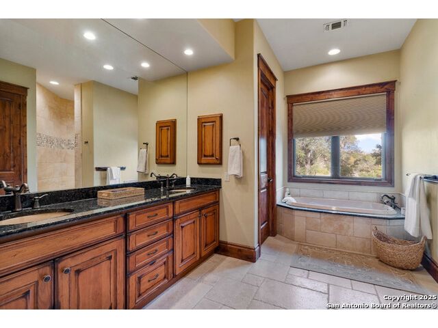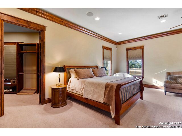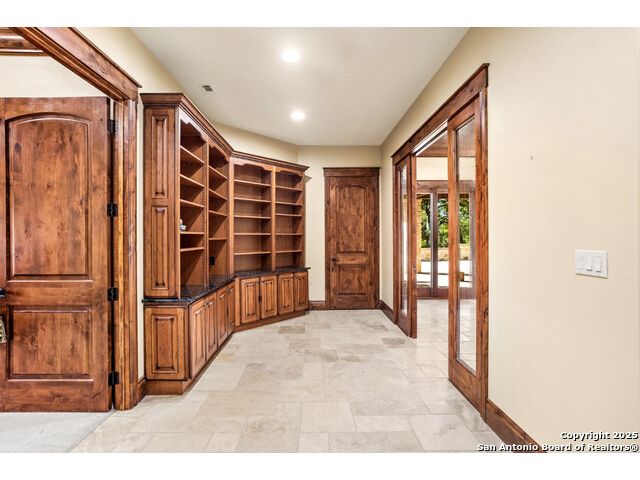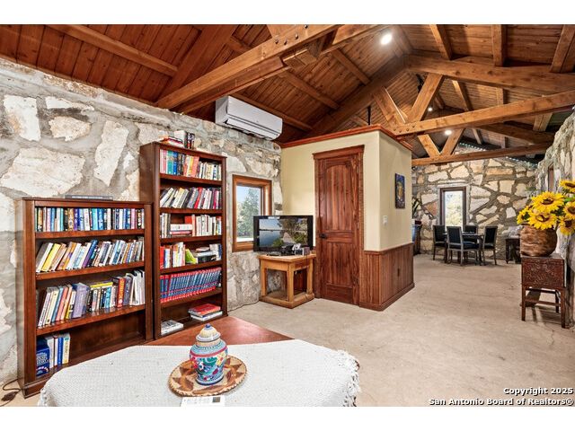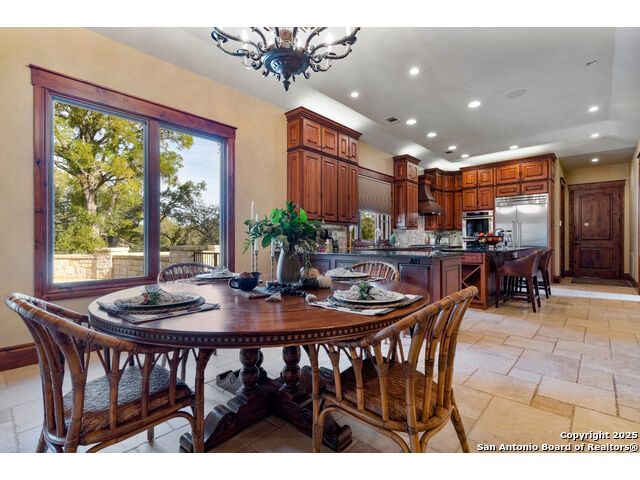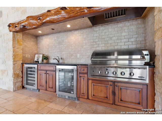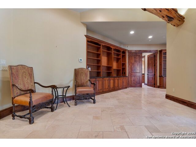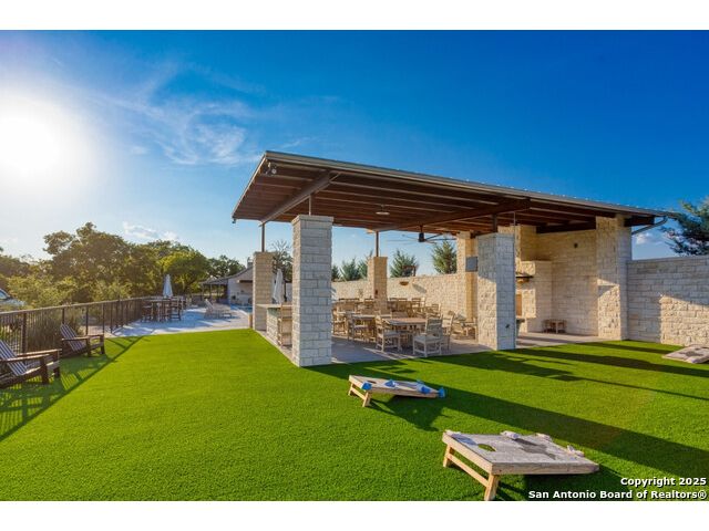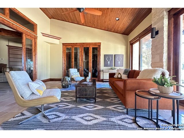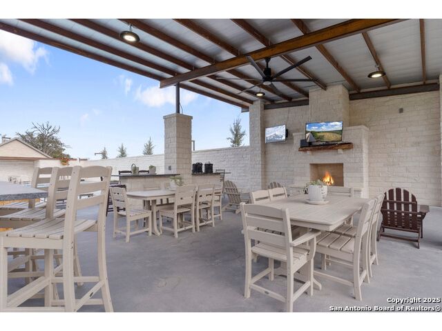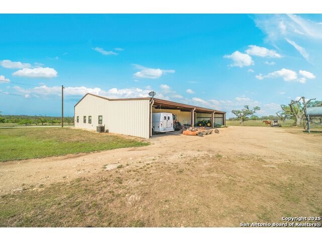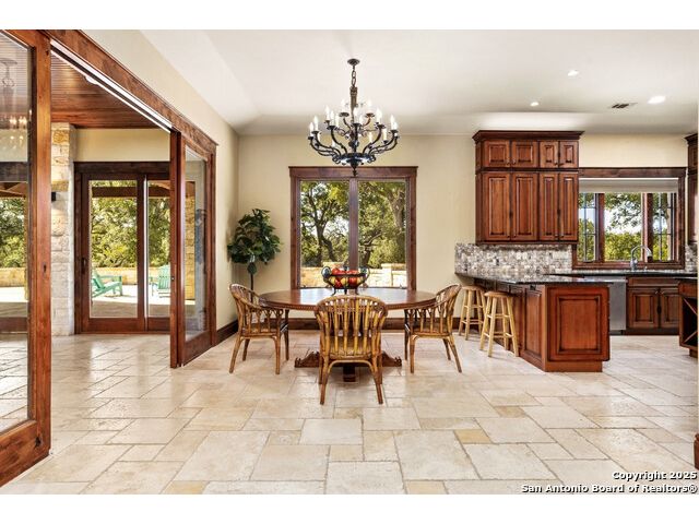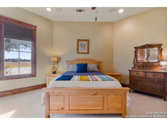 Experience the best of both worlds at this breathtaking 28.15-acre live water ranch, where serene Hill Country landscapes meet refined comfort and modern ease. Nestled in a lush bend of spring-fed Stevens Creek-and secured by a concrete dam that ensures year-round water flow-this turnkey estate invites you to swim, kayak, fish, or simply unwind along your own private stretch of live water. Located within one of the Hill Country's most prestigious and thoughtfully designed communities, it offers an extraordinary blend of elevated rural living, long-term investment appeal, and seamless access to upscale dining, boutique shopping, and everyday essentials. The main residence, a beautifully crafted 2013 White Rock home, is gracefully tucked beneath tall oak canopies, surrounded by native wildlife and dramatic creekside bluffs. From the moment you arrive, the attention to detail is clear-from the expansive paved circle drive and porte-cochere to the grand western statue that welcomes guests at the entrance. Inside, custom finishes abound: heavy wrought iron double doors, hand-hewn cedar beams, vaulted wood ceilings, rich woodwork, and multiple fireplaces set the tone. The open-concept kitchen is both stylish and functional, featuring a large island, high-end appliances, and a walk-through butler's pantry. Step outside to the vaulted, cedar-beamed back patio, where an expansive stone terrace stretches beneath the oaks and overlooks the creek-perfect for quiet mornings or lively outdoor gatherings. One of the home's most impressive and unique features is the indoor/outdoor firepit room, thoughtfully designed for year-round enjoyment. This grand entertaining space includes a floor-to-ceiling gas firepit, recessed rock wet bar with cedar beam accents, wine cooler, mini fridge, and built-in grill with vent hood. With a full wall of sliding glass doors that open to the outdoors and interior doors that close it off from the rest of the house, the space easily transforms for the season, weather, or occasion. Down a stone path from the main home sits the Game House-an inviting space perfect for entertaining and hosting guests. With a cozy living area, a full bath, cedar bar, built-in kegerator, and plenty of room for games and lounging, this space functions beautifully as a second living quarters, private hangout, or creative retreat. At the far end of the property, a 90x74' commercial-grade steel building offers unmatched functionality and space. Fully insulated and equipped with five 12x10 garage doors, it includes a finished HVAC living area with kitchenette and full bath-perfect for guests, caretakers, or added income potential. The barn offers ample storage for RVs, equipment, or even your classic car collection, with 14 covered parking bays and full water and electric hookups. This incredible estate is located within the prestigious Maverick community, a high-end, amenitized development known for its privacy, beauty, and attention to detail. Residents enjoy a high-fenced perimeter with roaming exotic wildlife, a gated entrance, paved roads, underground utilities, on-site groundskeeper, fiber internet, and more. With live water, luxury improvements, and multiple acreage purchase options available, this one-of-a-kind retreat offers the perfect blend of natural serenity, upscale living, and future flexibility-all in the heart of the Texas Hill Country. Smaller Acreage Purchase Options: Lot 22: 10.57+/- Acres | Lot 22+21: 16.20+/- Acres