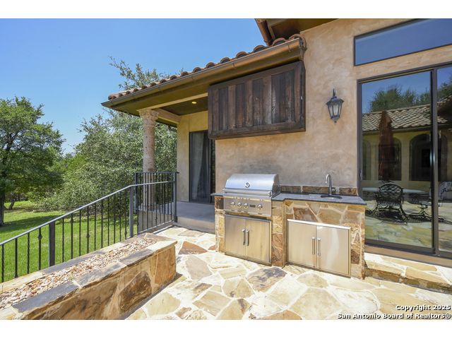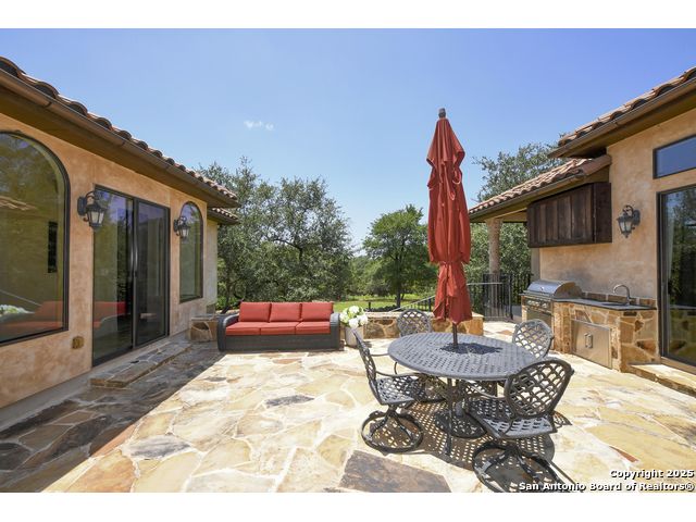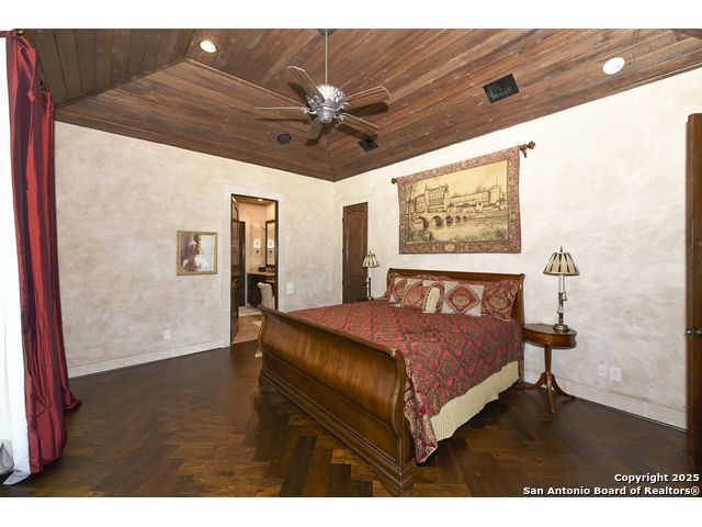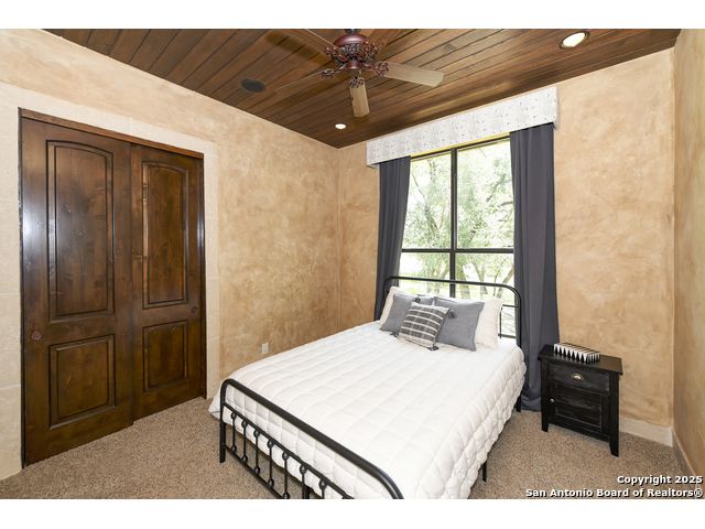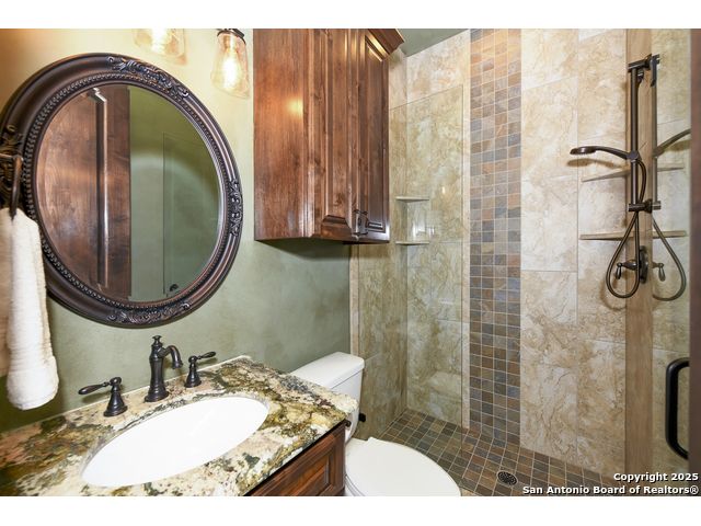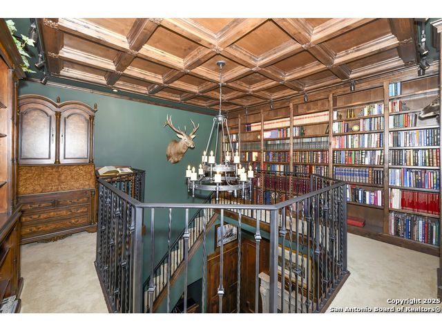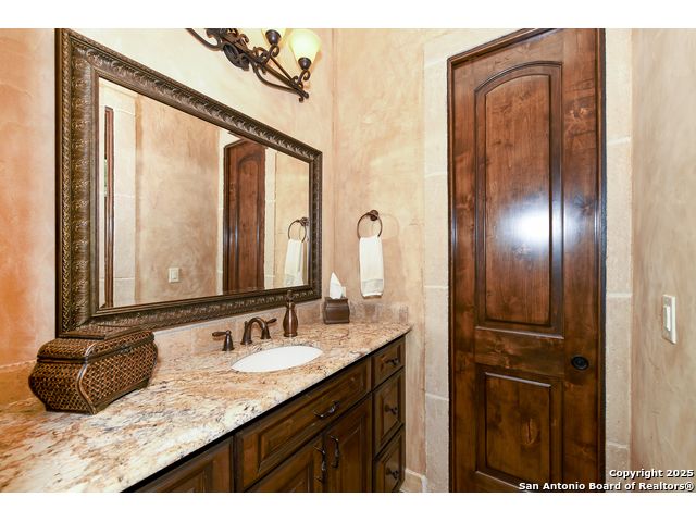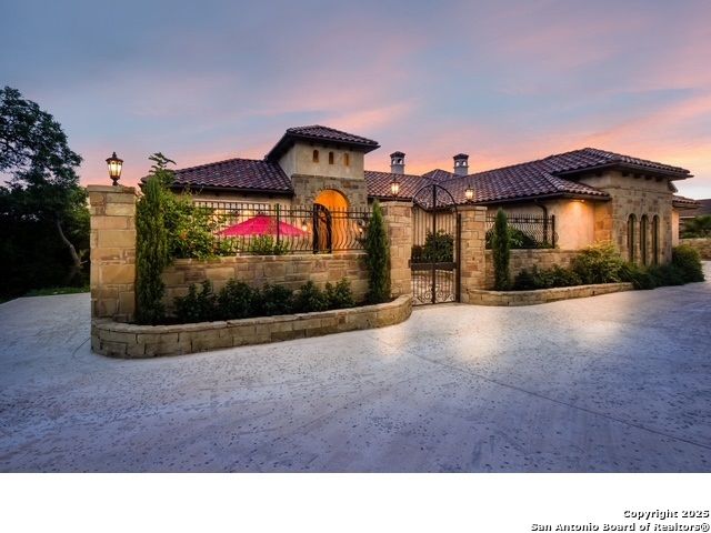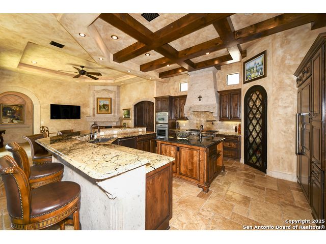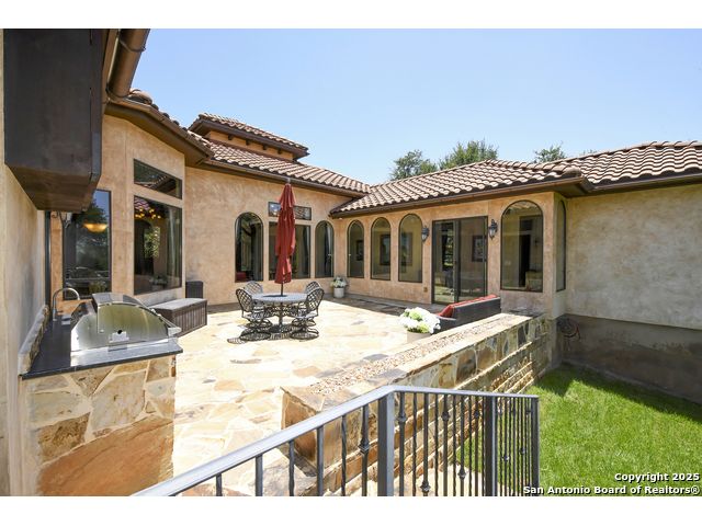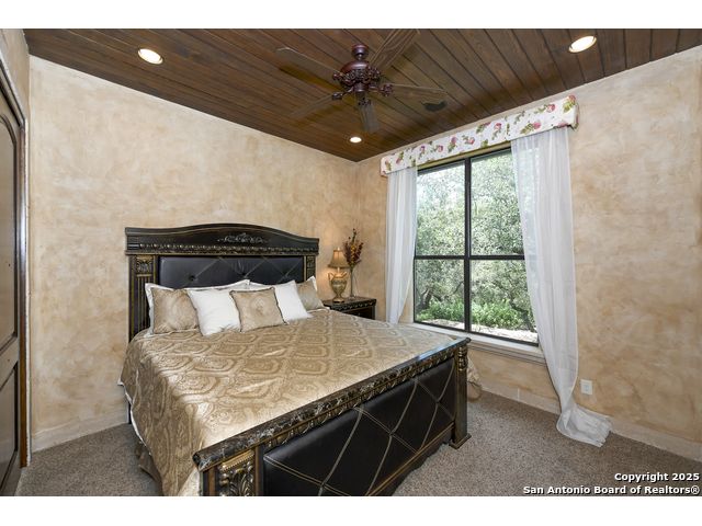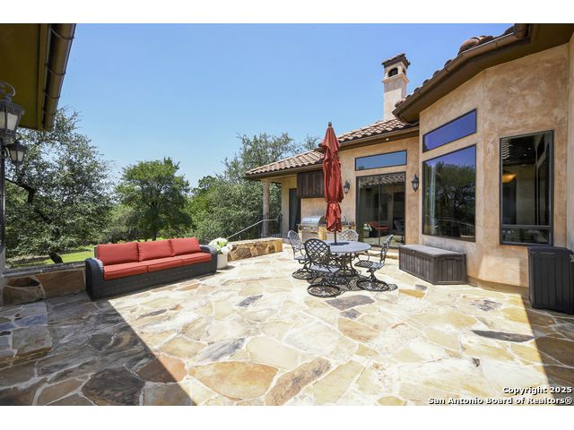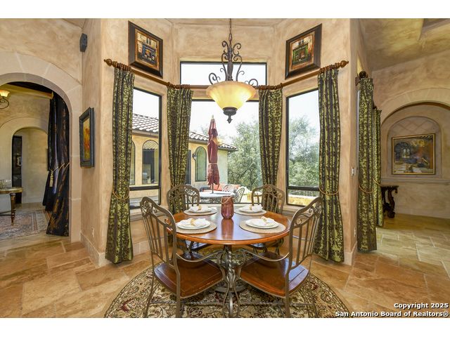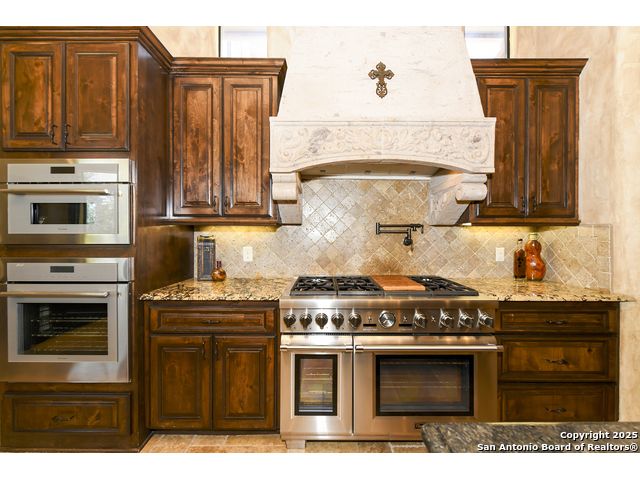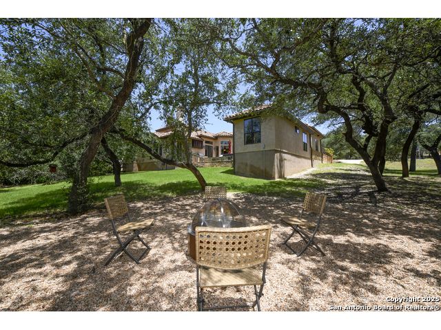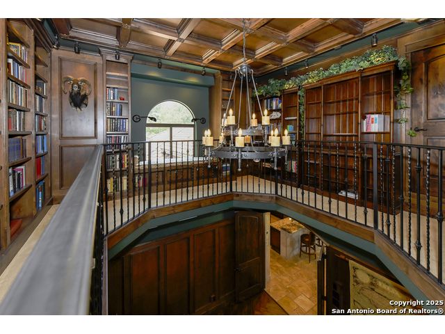 Amazing one of a kind custom built home on an acre in the hill country community of River Chase. True craftsmanship and premium materials, creating stunning living spaces. The sprawling modern floor plan features high ceilings, floor-to-ceiling windows, and stained wood T&G ceilings, flooding the interiors with abundant natural light. Custom ceiling and architectural details, upgraded light fixtures, a Cantera stone fireplace surround, and Versailles-pattern travertine flooring elevate the home's elegance. The chef's kitchen boasts Thermador stainless steel appliances, including a built-in refrigerator, dual dishwashers, a dual oven range, and an additional wall oven. The oversized master retreat offers herringbone-pattern wood floors, patio access, a spa-like bath with an oversized shower featuring three shower heads and a rain head, an expansive walk-in closet, and direct access to the study. Spacious guest suites come with large walk-in closets and built-in Murphy beds. Interior upgrades include an underground wine cellar, a two-story library with wood paneling on walls and ceilings, a temperature-controlled wine room, a central vacuum system, chiseled travertine, and herringbone wood flooring. Additional features are a slide-out coffee station in both the kitchen and master, old world stucco interior walls, powder bath, and guest room, and high-level granite and marble surfaces throughout. The serene outdoor space includes a large flagstone patio with a summer kitchen, an outdoor TV enclosure, and an expansive 1-acre lot within River Chase, offering endless possibilities for customization and expansion. Exterior highlights include a tile roof, front and rear courtyards with flagstone floors and flower beds with drip irrigation, iron and glass doors, Cantera stone columns and fountain, and a circular driveway. This home is prewired for a pool, equipped with whole-house surge protection, a new HVAC system in the main house (less than one year old), a hide-a-hose vacuum system, a water softener, and whole-house audio. Additional features include an expansive 7000 sq. ft. driveway with enlarged parking and dyed concrete, a fully landscaped yard front and back, and irrigation and drip lines throughout the landscape. Over 100 square feet of front gated flagstone patio with water fountain area. Adjacent acre parcel is available as well. Community has swimming pool, work out facility & gated river park.