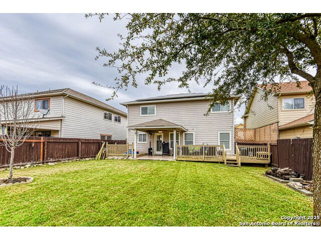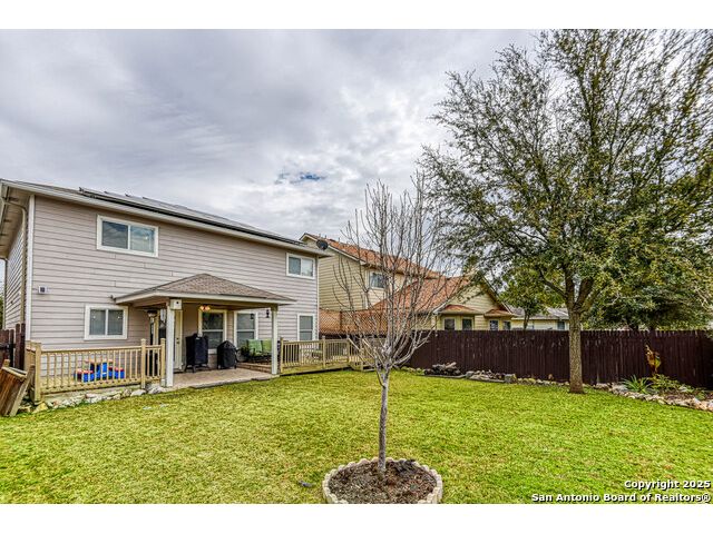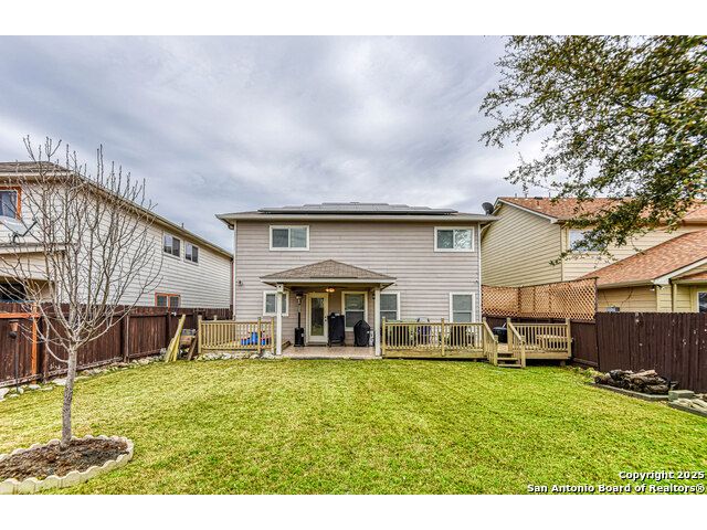 **Charming Home with Solar Panels!** This stunning 2-story home boasts 3 bedrooms, 2.5 bathrooms, and a versatile study that could easily serve as an additional 4th bedroom. Enjoy cooking in the gourmet kitchen, complete with 42" cabinets, solid countertops, and a spacious island. The open layout includes a dining room and separate living areas on both floors, with all bedrooms upstairs and study down. Plus, take advantage of dramatically reduced energy costs thanks to the included solar panels and brand new roof - the average electric bill is just $40/month! With its expansive deck and large backyard overlooking a serene greenbelt, this home is perfect for entertaining and is minutes from Shopping, Entertainment, Sea World & Lackland AFB. Rare find, schedule your showing today for the opportunity to make this unique property your new home!