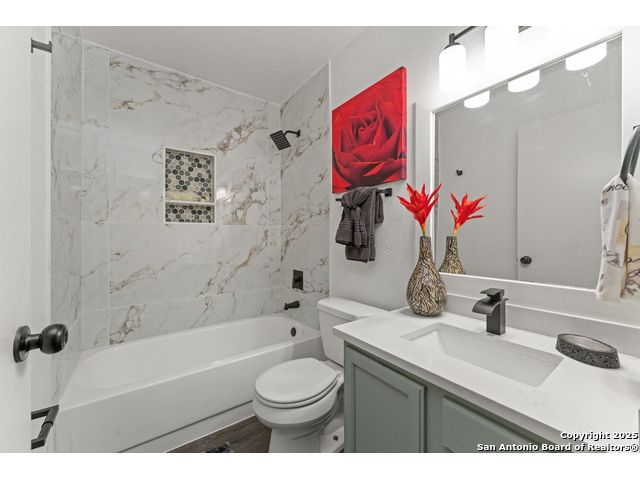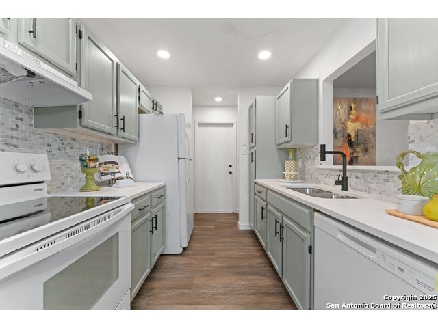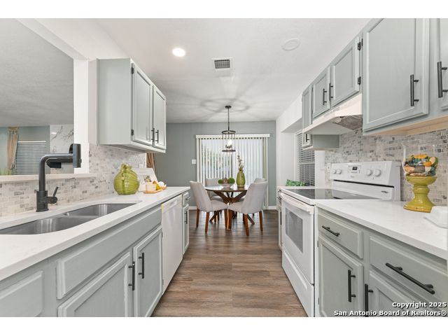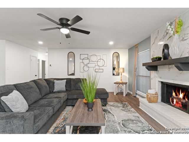 GORGEOUS 3-BEDROOM 2-BATHROOM HOME FILLED WITH PLENTY OF ATTRACTIVE UPGRADES. 2023 RUDD HVAC SYSTEM INSTALLED/GUTTER SYSTEM AROUND THE ENTIRE PERIMETER OF THE HOME. SERENE LIVING ROOM WITH A HANDSOME WOOD-BURNING FIREPLACE. LUXURY FLOORING. CUL-DE-SAC LOT. A BEAUTIFUL OPEN GRANITE KITCHEN WITH PRISTINE COUNTERTOPS. BOTH BATHROOMS HAVE BEEN COMPLETELY RENOVATED WITH ONLY THE FINEST SELECTIONS. DESIGNER COLOR CABINETS AND TONS OF RECESS LIGHTING, STUNNING BREAKFAST NOOK LIGHTING, ELEGANT INTERIOR/EXTERIOR COLOR PAINT SELECTIONS. THIS GEM OF A HOME IS A MUST-SEE AND YOUR FAMILY IS BOUND TO FALL IN LOVE!!! AN OASIS SYTLE BACKYARD. PERFECT FOR ENTERTAINING. MINUTES TO ALAMO RANCH SHOPPING CENTER/1604/ THE RIM /UTSA/ LA CANTERA MALL AND THE MEDICAL CENTER. CLOSE TO HWY 90, IH 410.