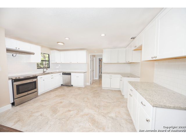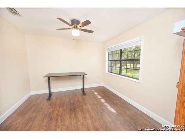 Recently updated spacious 4 bedroom 2 bath home nestled on a little over an acre! Multiple mature trees in the front yard blocking plenty of heat during the day. This home enters to large living area with a real wood burning fireplace. Open kitchen concept with beautiful white cabinets, tile backsplash and granite counter tops! Primary bedroom with a full bath featuring a double vanity and tiled walk in shower! Secondary bedrooms all recently redone, and share fully remodeled secondary bathroom with a beautiful tiled tub/shower combo. 2 car attached garage that leads into a flex space/utility room that can be used as a walk in pantry. Washer and dryer are secluded in a separate room. Lastly near the entrance is a very spacious office. This property offers a very spacious backyard also including mature trees.