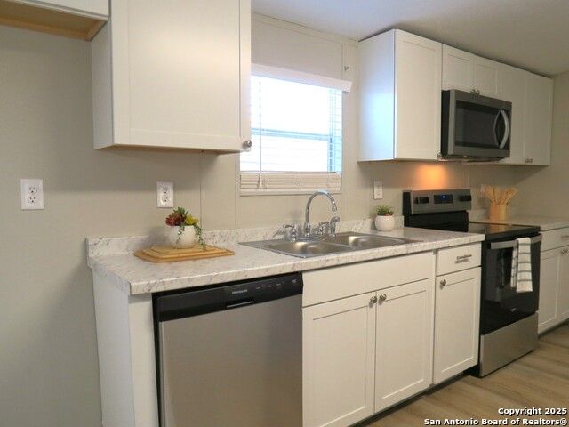 Spacious 4 bedroom home with 2 living areas. Updated and beautiful. Island kitchen features new stainless appliances. New light fixtures. New faux wood flooring in both living areas, dining, and kitchen. New carpet in the bedrooms. Fresh paint inside and out. New 2 inch blinds and window treatments are included. New AC and heat system 6/2025.
