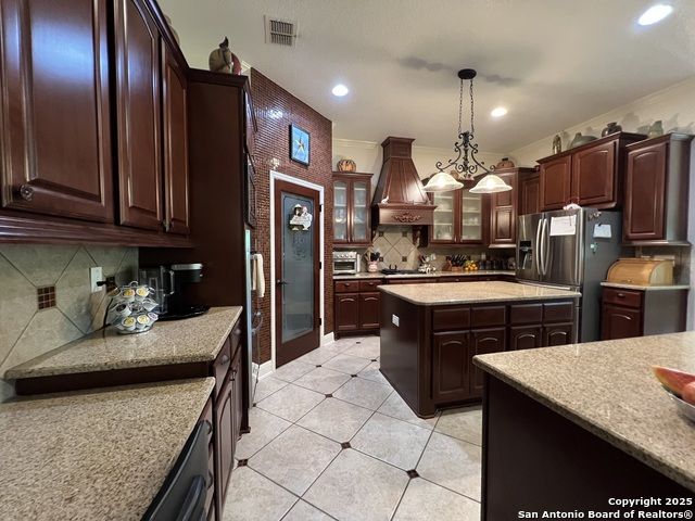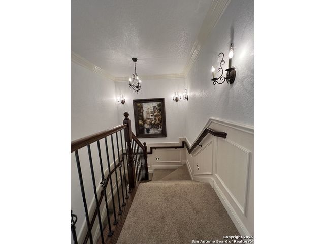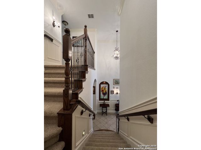 This stunning home has 4 bedrooms, 3.5 baths, office, separate breakfast area w/decorative ceiling over looking the amazing backyard, formal dining room fit for a King, desirable kitchen w/lots of custom cabinets, cook top, double ovens, built-in microwave, granite counters, island kitchen, walk-in pantry and overlooks a spacious living room w/stone fireplace, built in decorative wall cabinet. 3 bedrooms and master down, one bedroom, full bath and media room upstairs. There are so many upgrades and beautiful touches to this home! A few of the exterior features include a large covered porch, lots of mature trees, sprinkler system, concrete and rod iron fencing, 3 car garage, garage door openers. This home is truly a must see!