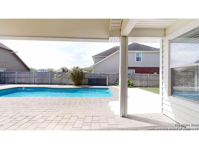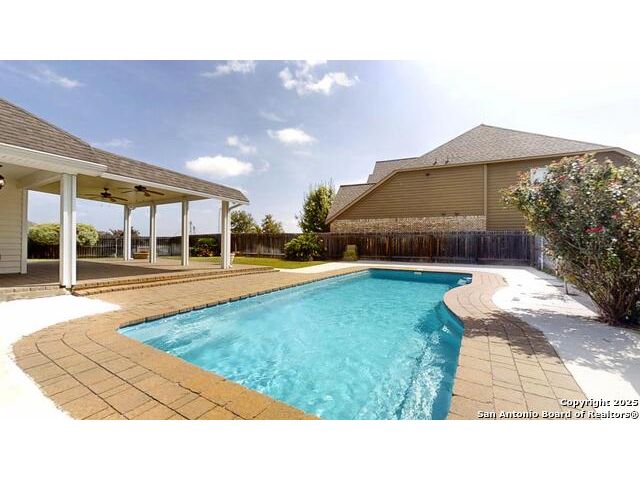 Seguin, Texas corner lot 4/3/2 with inground pool, separate formal living area, separate formal dining room! High ceilings! All bedrooms down featuring extensive use of neutral toned tile and wood flooring! Fireplace in living area! Bright open floor plan with plenty of kitchen cabinets, granite counter tops, walk-in pantry, spacious breakfast area with view to back patio and pool area. Easy access from kitchen to patio for those gatherings with family and friends! Spacious laundry area! Plus great room, super ample closet and media room and full bath on second level! Pool is ready to enjoy; this is a must see in established neigborhoo! Minutes to New Braunfels. Convenient location and easy access to shopping and major highways!!