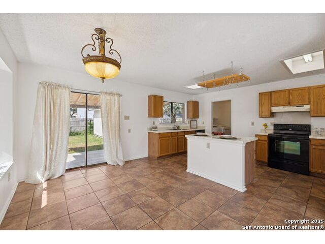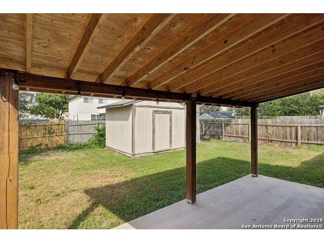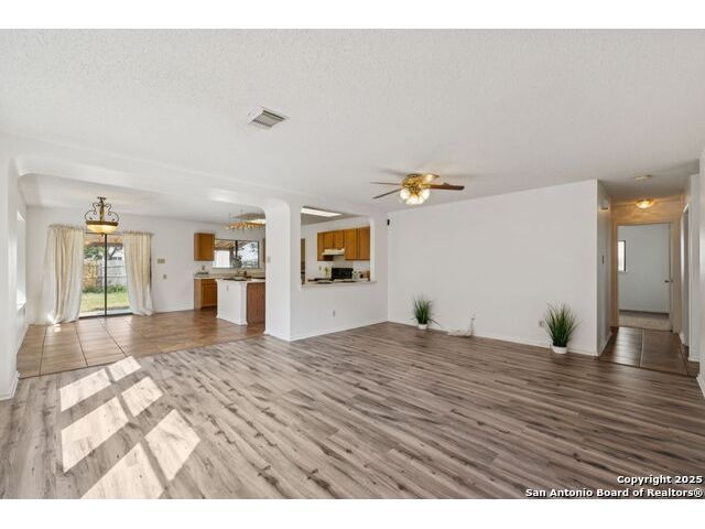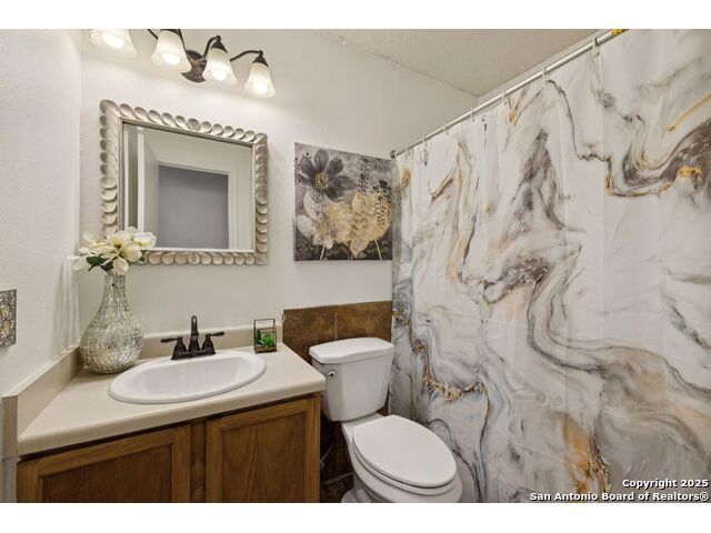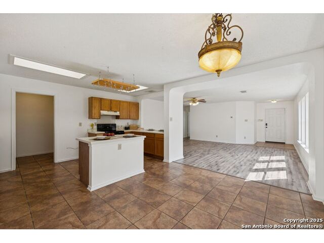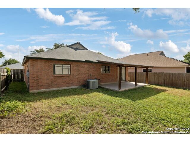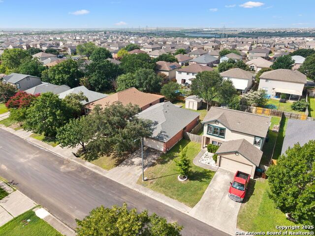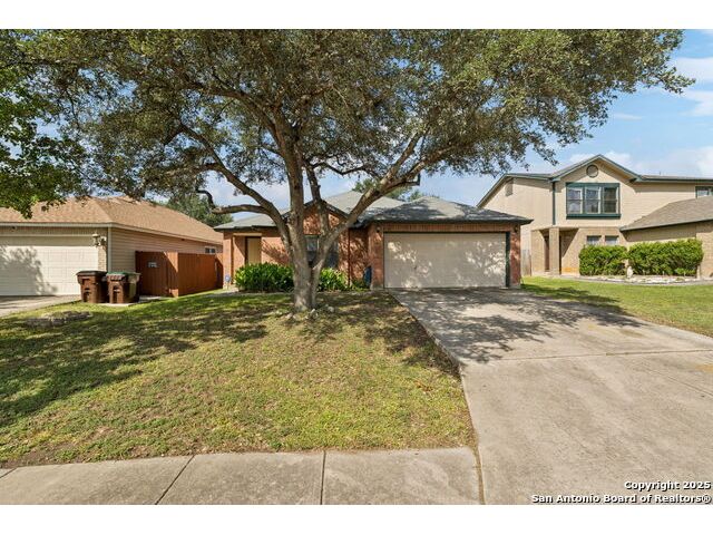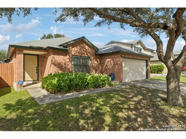 Welcome to your dream home! This beautifully maintained 3-bedroom, 2-bathroom single-story gem offers 1,862 sq. ft. of bright, open living space and effortless charm - all on a level lot with gorgeous curb appeal and no stairs to worry about! From the moment you arrive, you'll be impressed by the full 4-sided All Brick exterior and inviting layout. Step inside and enjoy a spacious open-concept floorplan that's flooded with natural light and perfect for both everyday living and entertaining guests. The heart of the home is the kitchen, complete with a large island, tons of cabinet space, and a walk-in pantry/laundry combo for ultimate functionality. The oversized living area flows easily into the dining space - ideal for game nights, dinner parties, or cozy evenings in. Retreat to the private primary suite, featuring a large walk-in closet and en-suite bath, while two additional bedrooms offer flexibility for guests, kids, or a home office. Need extra room? You'll love the converted garage space - perfect as a game room, media room, or second family room! Outside, relax or entertain under the spacious covered back deck, overlooking a peaceful yard with a storage shed and plenty of room to enjoy the outdoors. Nestled in a prime location near top-rated schools, The Forum shopping center, Randolph AFB, BAMC, and I-35, this home offers the perfect balance of comfort, style, and convenience. Don't miss your chance to own this one - schedule your showing today and make it yours before someone else does!