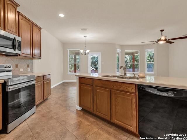 Welcome to this One-Owner gem located in the highly sought-after WinnBrook Estates community of Windcrest. This Spacious & Beautifuly Maintained, Elegant home offers an impressive blend of comfort, craftsmanship, and functionality. Step inside to soaring 10-ft ceilings downstairs and 9-ft ceilings upstairs, creating an open and airy feel throughout. The home features three living areas and three dining spaces, perfect for entertaining, relaxing, or hosting large gatherings. The large kitchen island, corner pantry, and crown-molded cabinetry provide both style and convenience. The primary suite is located downstairs, offering privacy and comfort with a separated vanities and ample storage. All upstairs bedrooms include walk-in closets, giving everyone their own spacious retreat. Enjoy cozy evenings by the wood-burning fireplace or step outside to your Texas-sized covered patio, ideal for relaxing or entertaining year-round. The home also features three sides stone, a charming 20' x 5' front porch, with Mature Trees and a beautiful bay-window living area that fills the space with natural light. No carpet downstairs and meticulous care from the original owner, this home is move-in ready and full of character.