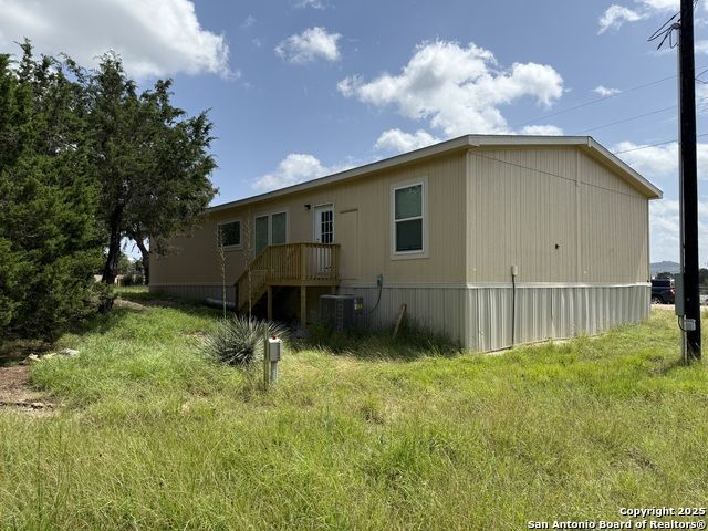 Spacious and like new, this 3-bedroom, 2-bath manufactured home offers 2,046 square feet of living space on +-.25 acres in a secure, gated community, in Bandera Tx. Built in 2020, Inside, the home features tape and texture throughout and an open floor plan with abundant storage, large closets, and a kitchen designed for functionality, complete with granite-look laminate countertops, a large island, a bar, and all appliances included. The spacious primary bedroom offers a tray ceiling and an ensuite bath that includes separate vanities, a walk-in shower, and a freestanding soaking tub - perfect for unwinding in your own private retreat. The home is on city sewer and water. Located in a gated community that offers added security, this property also provides access to an indoor clubhouse, recreational building, swimming pool, and rental cabins for guests. Showings require a business card and ID for entry. Just minutes from shopping and restaurants, this versatile property is ideal for those looking for space, privacy, and potential to expand.