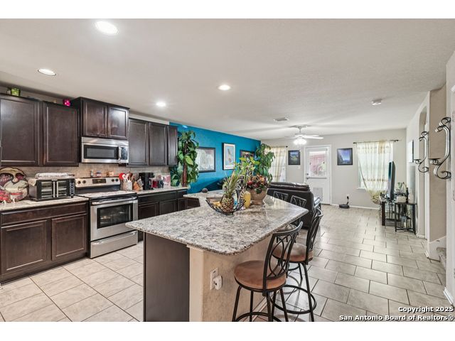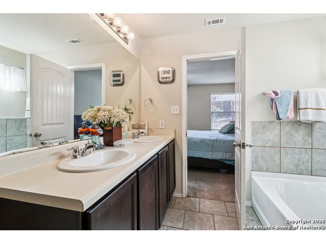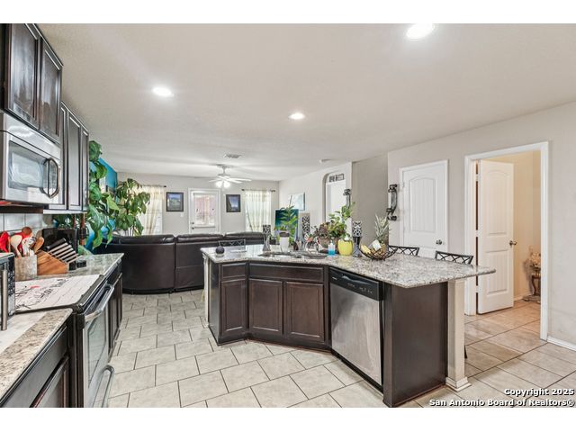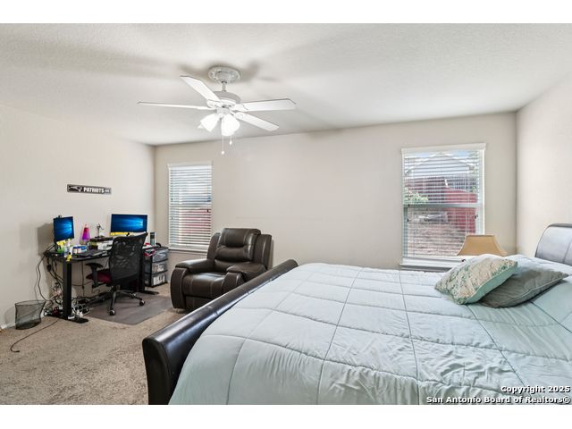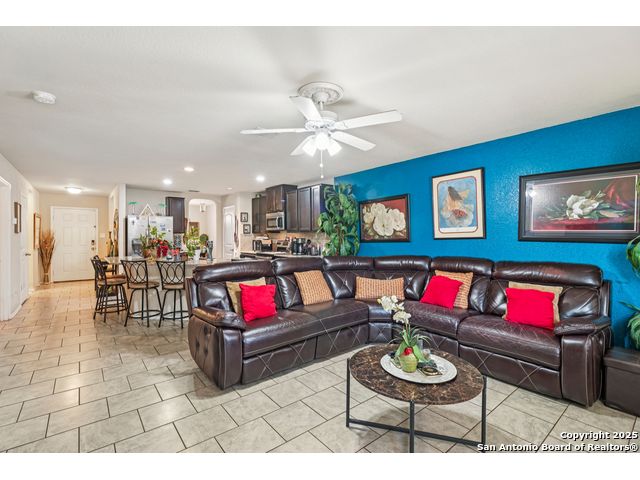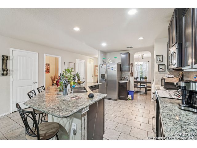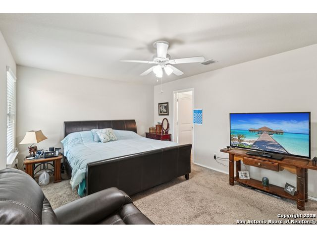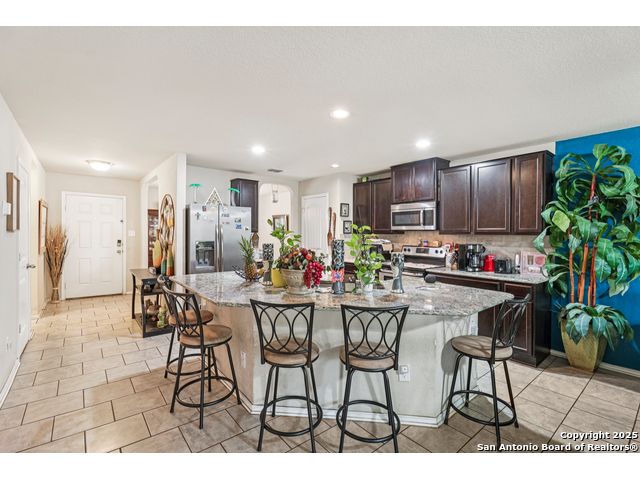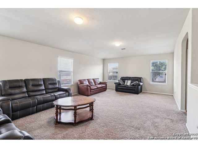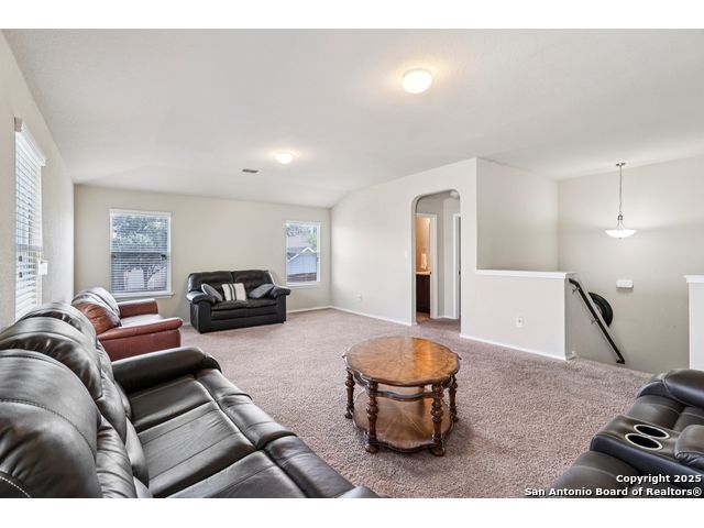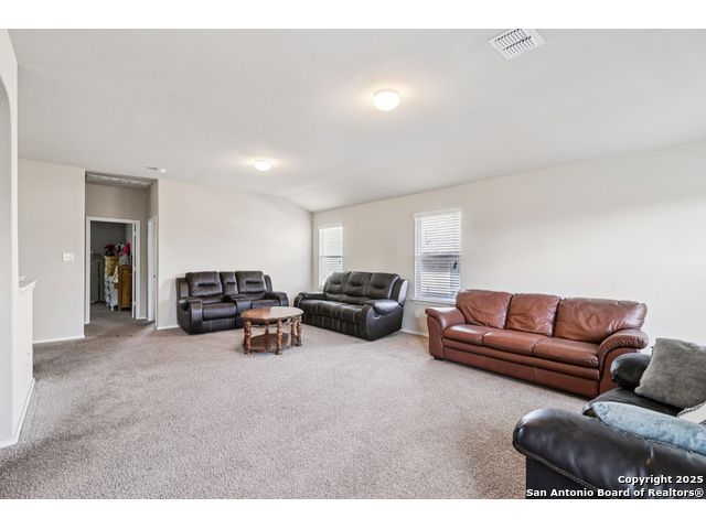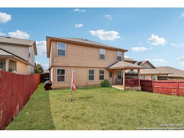This spacious 2-story home is located in the inviting community of Solana Ridge and offers plenty of room to spread out with 5 bedrooms and 3.5 bathrooms. The first floor features a generous living area with backyard access, seamlessly connected to a functional kitchen with an island, breakfast bar, granite countertops, pantry, and ample cabinetry. A separate dining room provides space for gatherings and meals. The primary suite is conveniently located on the first floor and includes a private bath. Upstairs, you'll find a large second living area or game room, along with four well-sized secondary bedrooms, offering flexibility for guests, hobbies, or a home office. The backyard is ideal for relaxing or entertaining, with a covered patio, a spacious lawn, and a privacy fence. Enjoy access to great neighborhood amenities, including a community pool, outdoor fitness equipment, and a 5k running path. Conveniently situated near Walmart, H-E-B, the Aquatic Center, and local schools, with easy access to I-410. Schedule your showing today!
