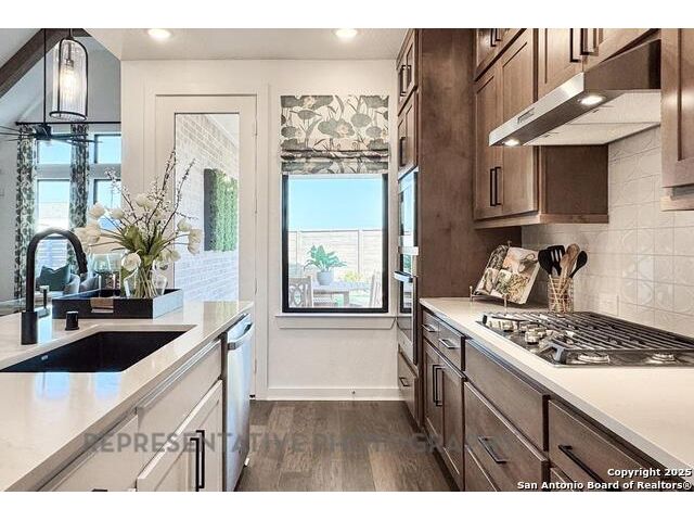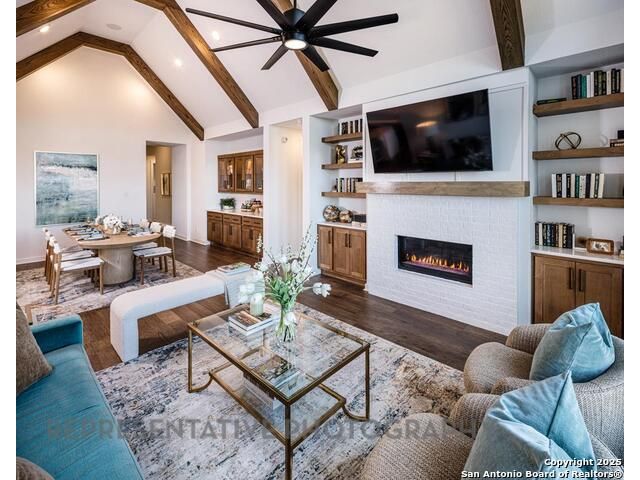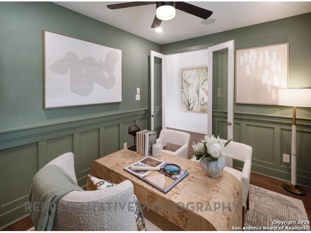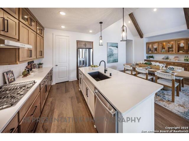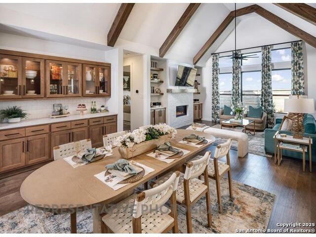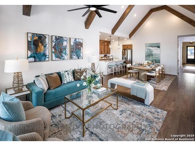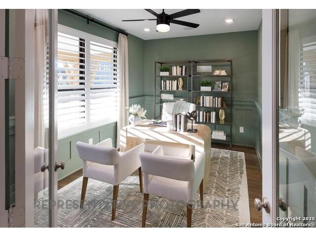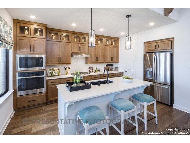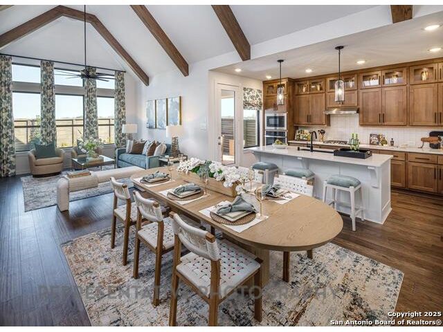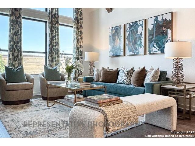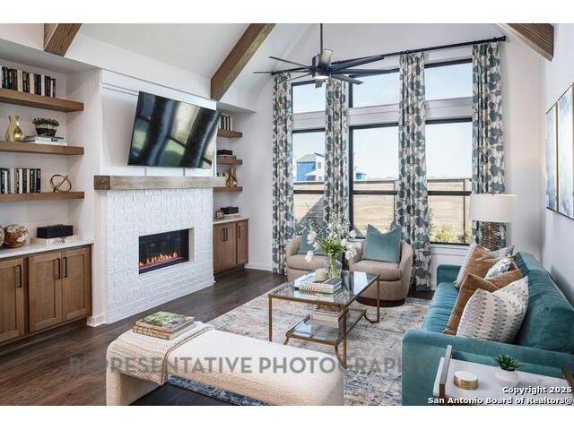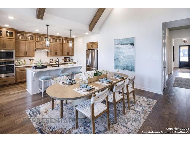 The Matisse Plan is a 1 story home which features 4 bdrms, 3 bath, study, custom cabinets in dining and family room, coffered ceilings with sheetrock beams, oversized 2 car garage. Views of permanent greenscape from the covered patio.