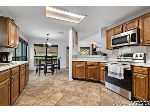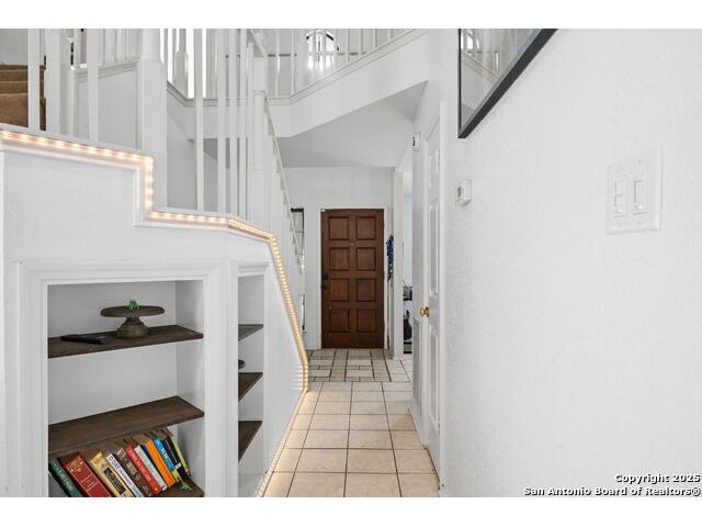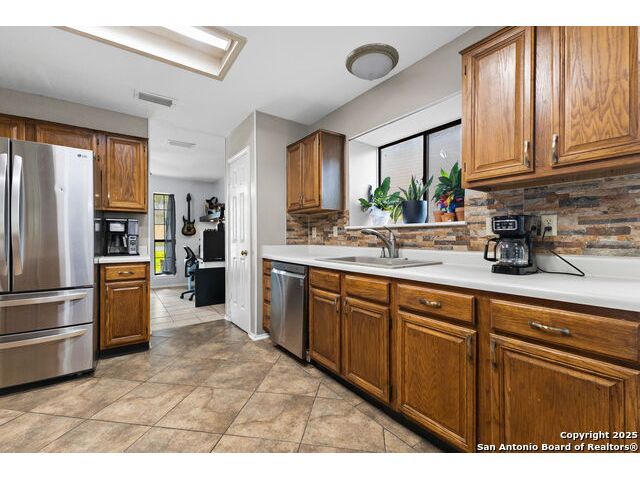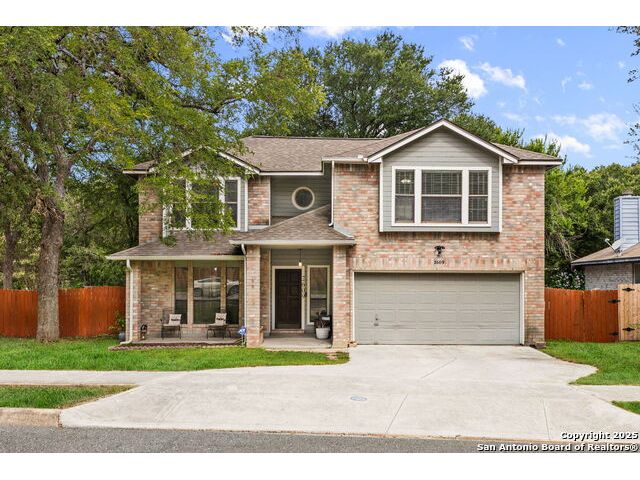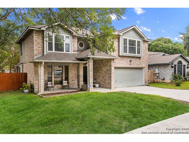 Welcome to Your New Home in Woodland Oaks! Fall in love with this charming 3-bedroom, 2.5-bath home nestled among mature trees and backing up to a peaceful greenbelt in the friendly Woodland Oaks community of Schertz, TX. Step inside to a bright and open floor plan that feels both spacious and inviting. The family room features a cozy fireplace, perfect for relaxing evenings, while the sunny breakfast area offers the ideal spot for casual meals and morning coffee. Upstairs, your private master suite provides a relaxing retreat with a generous walk-in closet, a soothing garden tub, and a separate shower. Outside, you'll love the large backyard, perfect for kids to play, pets to run, or hosting summer barbecues under the covered patio. It's a great space to make memories all year long. This home combines warmth, comfort, and outdoor living in one wonderful package. Added Perk: Take advantage of a VA assumable loan with a low 3.13 interest rate for qualified buyers!
