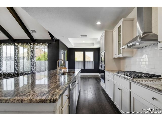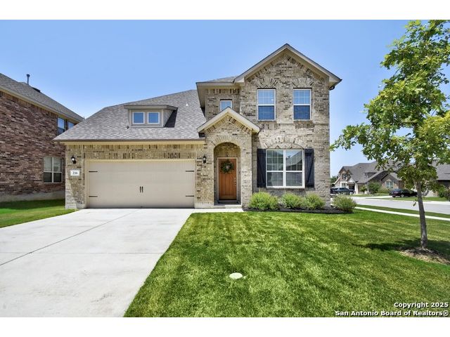 Welcome to this impeccably maintained, like-new home in the wonderful Southglen community of Boerne, TX. From the spacious kitchen to the vaulted ceilings, wood beams, and natural light, 216 Kilmarnock boasts an abundance of upgrades designed for comfort and entertainment. The primary bedroom is located on the first level, and three secondary bedrooms, as well as a loft, are located on the second; each affording the other privacy and space. Need even more space? An extra flex room downstairs offers endless possibilities- use it as a home gym, playroom, office, or guest room to suit your needs. Conveniently located near I-10 and downtown Boerne excitement. Come experience this beautiful home.