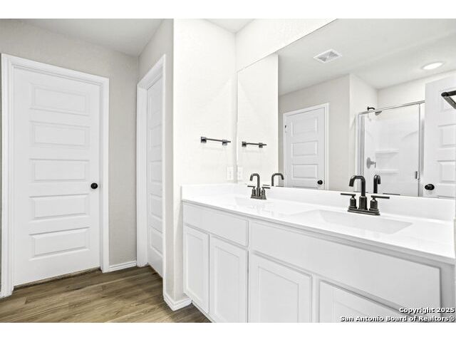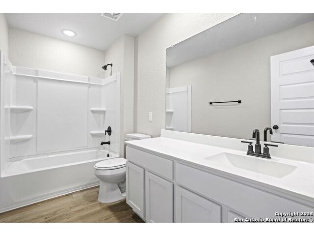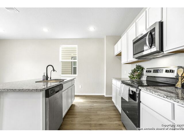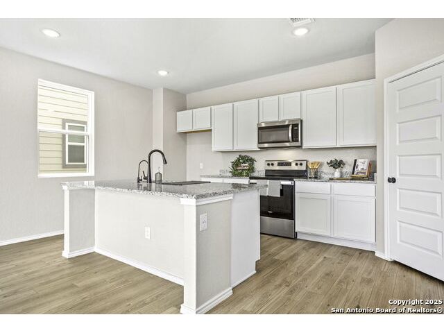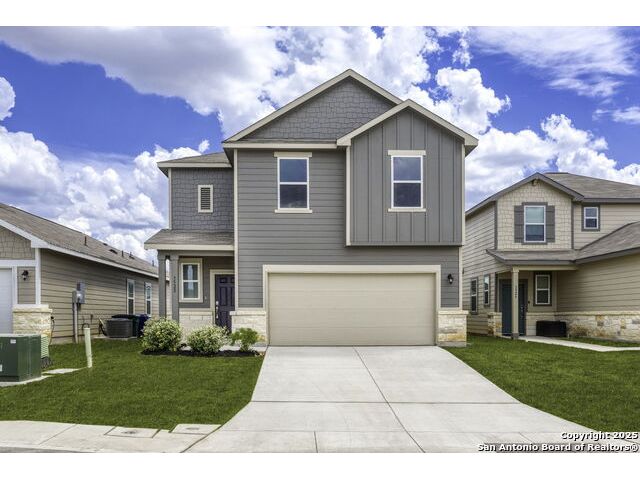 Stunning two-story gem in the desirable Los Altos community, this well-maintained 3 bed / 2 bath backs a green belt. Home features open-concept floor plan, featuring a spacious living/dining area seamlessly flowing into the eat in kitchen, granite countertops, a central island with breakfast bar, and a walk-in pantry. The primary bedroom includes a full bath with double vanity and an oversized walk-in closet; two additional bedrooms and a second full bathroom offer flexibility for family. Two car garage, laundry room, and low-maintenance landscaping. Benefits of this homes location include proximity to Lackland AFB, Texas A&M San Antonio, shopping, Toyota plant, Palo Alto College, dining, and quick access to highways