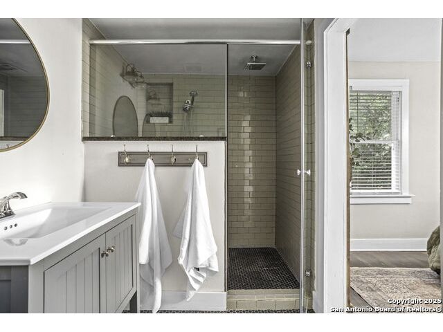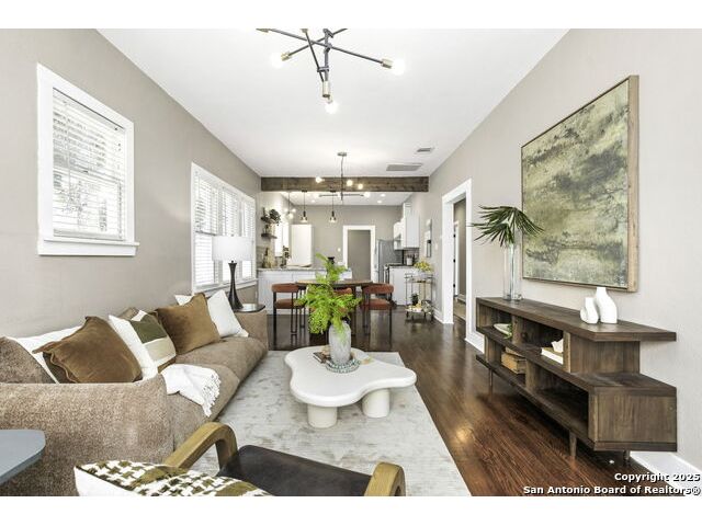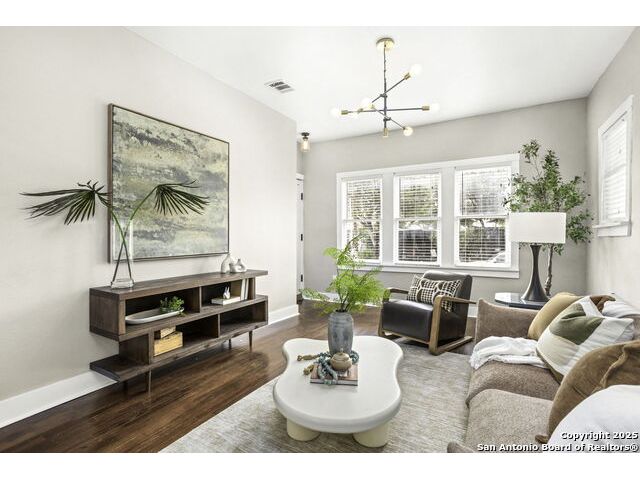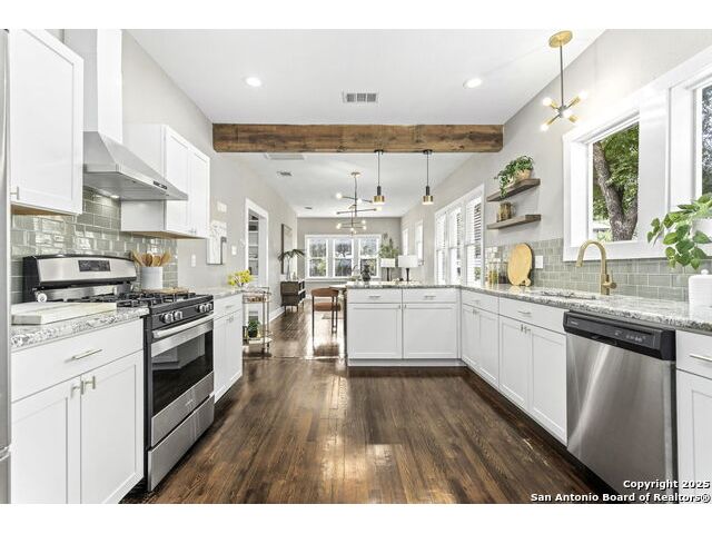 Built in 1920, this beautifully maintained bungalow blends historic charm with thoughtful modern updates - all nestled in the vibrant St. Mary's Strip district of Tobin Hill. Just minutes from Hwy 281, this gem offers unbeatable access to all of San Antonio, while placing you steps from local favorites like Summer Moon Coffee, The Plant Shoppe, YMCA, Tycoon Flats, and a variety of eclectic shops and eateries. Step inside to discover a functional and inviting 3-bedroom, 2-bath open-concept floor plan with spacious living areas, abundant natural light, and original hardwood floors. The kitchen boasts gas cooking, granite countertops, stainless steel appliances, ample cabinetry, plus a charming window over the sink. Recent upgrades include a freshly painted exterior, interior touch-ups, refreshed landscaping, custom Elfa closet systems in the bedrooms, and added built-ins for smart storage solutions. The home also features a one-car garage for off-street parking, and a backyard oasis with string lights and privacy fencing. The mature trees, covered front patio, and classic stonework provide undeniable curb appeal. Whether you're strolling to brunch, biking to The Pearl, or enjoying a quiet evening under the lights in your backyard, 353 E Woodlawn delivers the lifestyle you've been looking for - blending location, charm, and convenience in one unforgettable package.