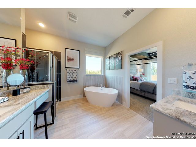 MOVE IN READY! Beautifully designed two-story home that offers the perfect blend of comfort, functionality, and style. 4 spacious bedrooms, 3 full bathrooms, a private study, & a versatile game room, this home provides ample space for both relaxation and entertainment. Thoughtfully designed kitchen, which boasts abundant cabinet and countertop space, walk-in pantry, and a large, rounded island that's perfect for casual dining or hosting gatherings. The adjoining large outdoor living area extends your entertaining space and invites year-round enjoyment. Retreat to the expansive primary suite, where you'll find a luxurious bathroom complete with separate his-and-hers vanities, a stunning corner soaking tub, and plenty of natural light. Upstairs, discover a spacious game room perfect for family fun or a media setup! Additional features include an elegant electric fireplace for cozy evenings and an oversized garage with extra space for storage or hobbies.