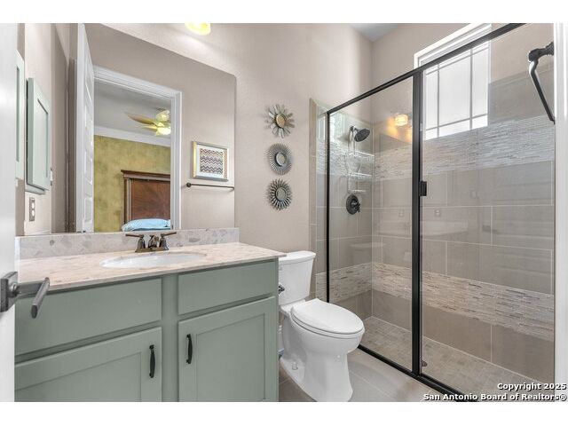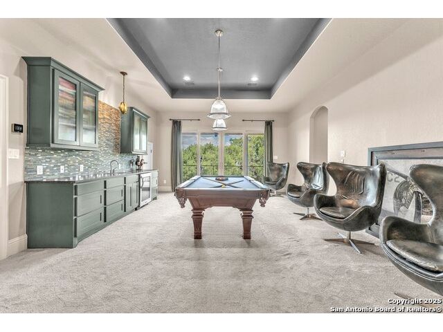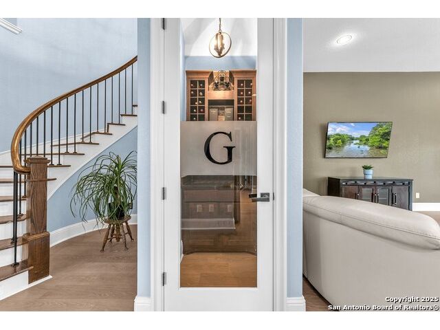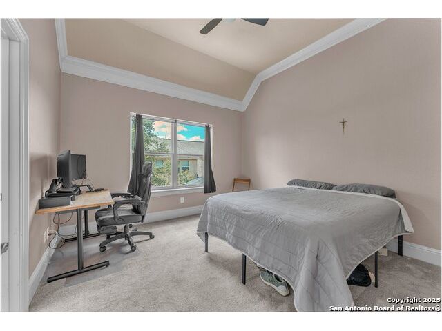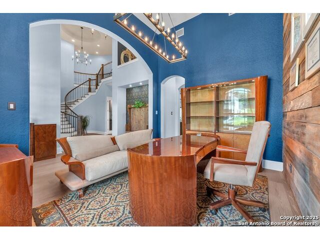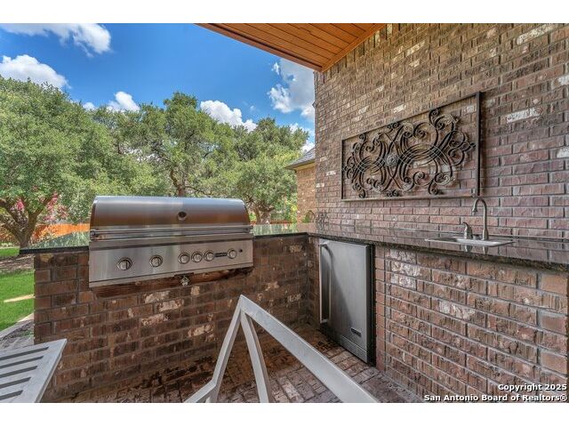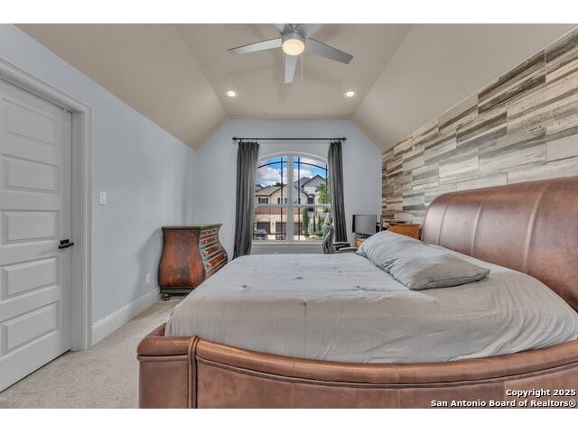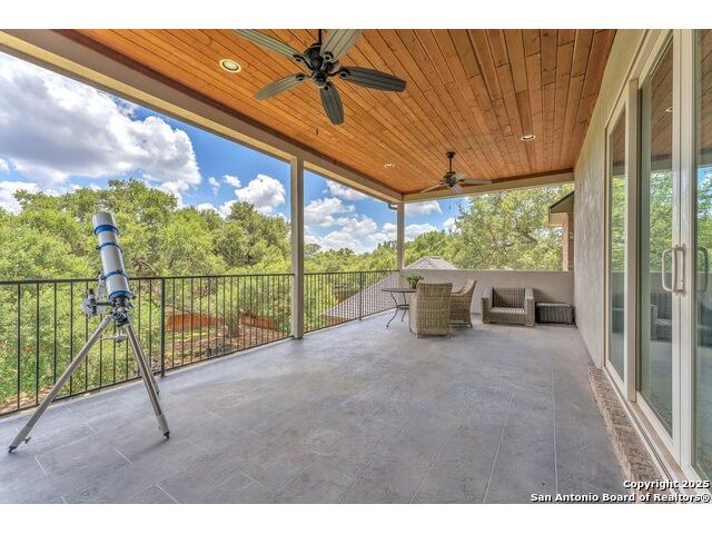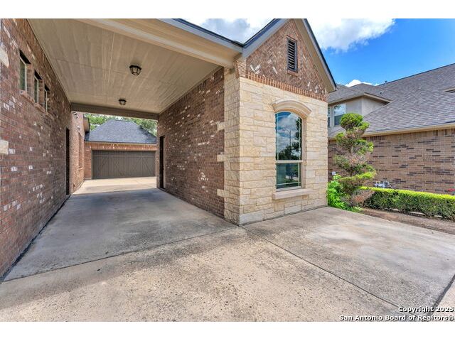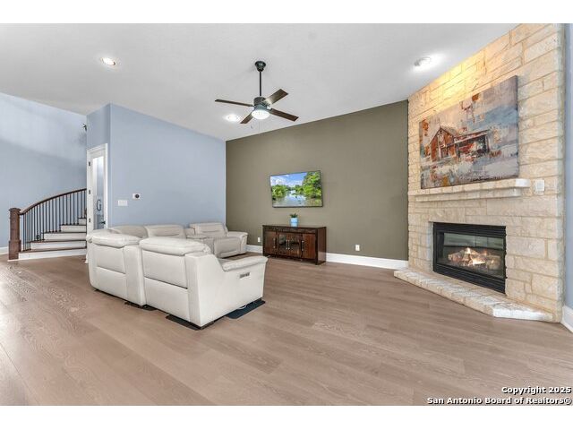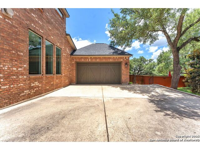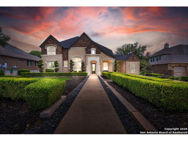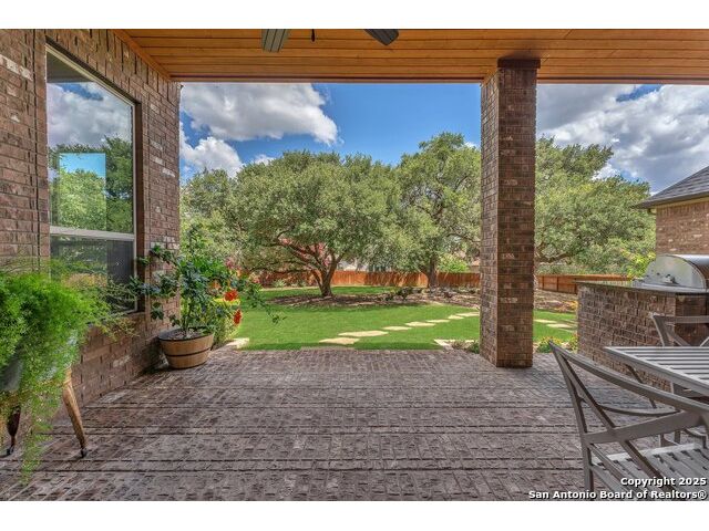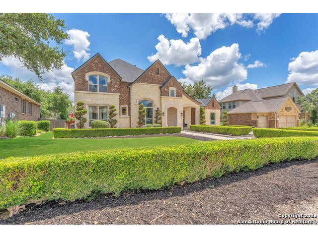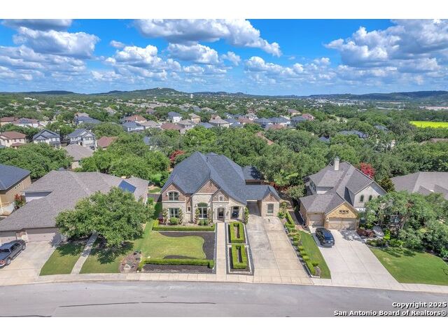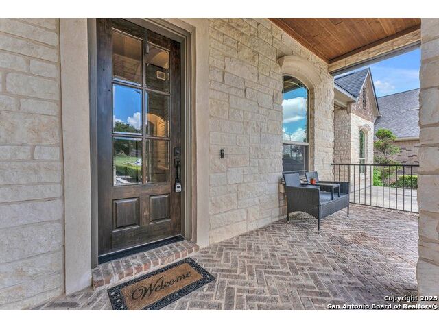 PRICE IMPROVEMENT + VA ASSUMPTION OPTION AVAILABLE! This stunning 5-bedroom, 5.5-bath former model home sits on a .45-acre lot in a gated community and offers a perfect blend of luxury, comfort, and functionality. Thoughtfully refreshed, the home features a brand-new roof, fresh interior paint, remodeled primary bathroom, new main-level flooring, and new carpet upstairs. The open-concept layout is ideal for entertaining, with a spacious family room and stone fireplace that opens to the gourmet kitchen featuring granite countertops, a 6-burner gas cooktop with pot filler, double ovens, two dishwashers, an oversized island, and a walk-in pantry. Additional main level spaces include a morning room with a second fireplace, formal dining room, wine and bar area, dedicated office, mudroom with built-in storage, and utility room with carport access. The main level also includes a private guest suite and a luxurious primary suite with serene views of mature oak trees, coffee bar, dual vanities, walk-in shower, garden tub, and a large walk-in closet. Upstairs, an elegant spiral staircase leads to a large game room with wet bar and access to a covered balcony, a media room with accent brick wall, and three generously sized secondary bedrooms, each with its own private bath and walk-in closet. Outdoor living is equally impressive with a covered patio, outdoor kitchen, and a spacious, fully fenced backyard shaded by mature oak trees, including one estimated to be over 100 years old. Parking is abundant with a two-car attached garage, one-car detached garage, carport, and extended driveway accommodating up to 12 cars. Located in a private gated community with neighborhood pool, park, and sports court, this home offers convenience with easy access to I-10, downtown Boerne, La Cantera, The Rim, and North San Antonio amenities. A rare opportunity, this property also offers a possible VA assumable loan subject to qualification and lender approval. Schedule your private showing today.